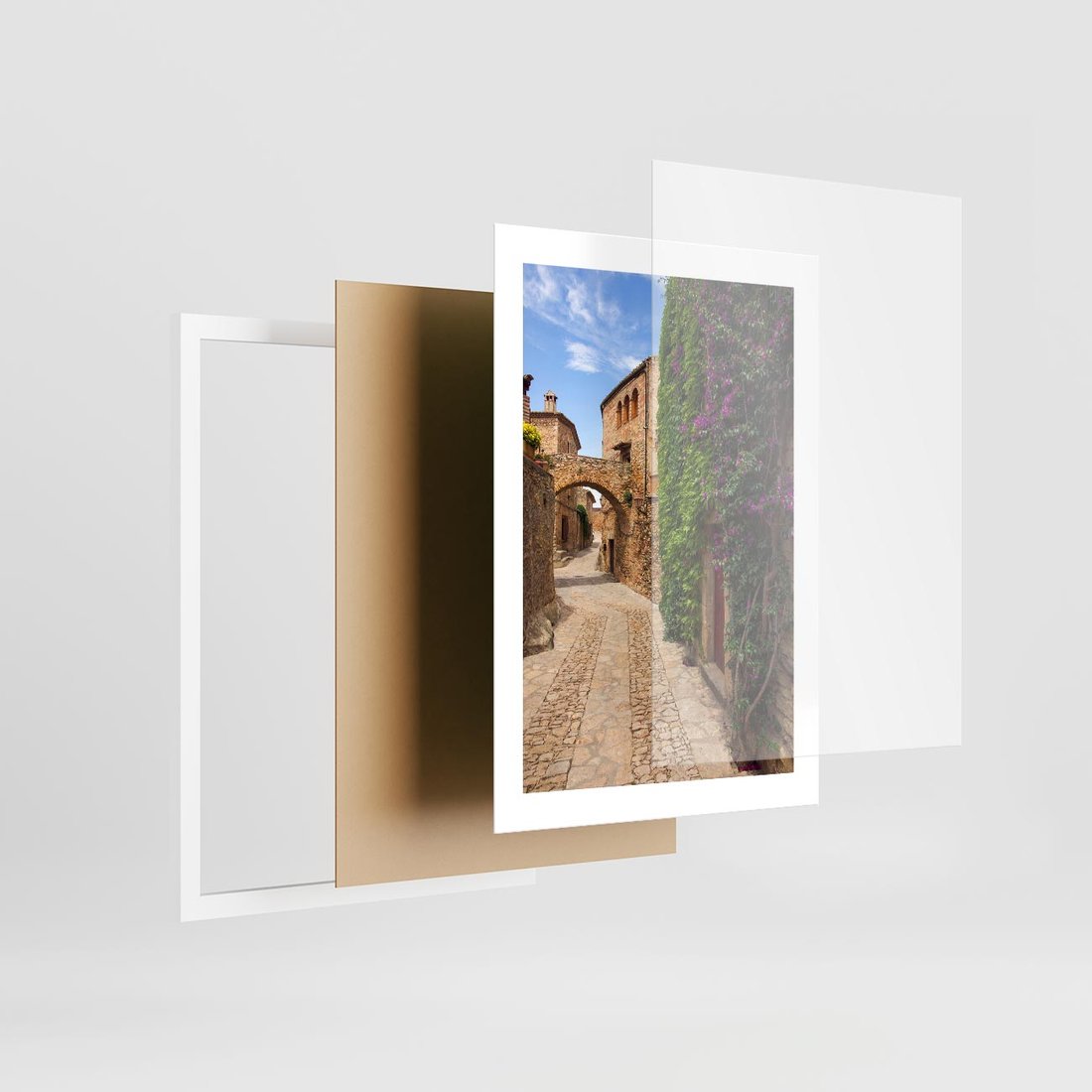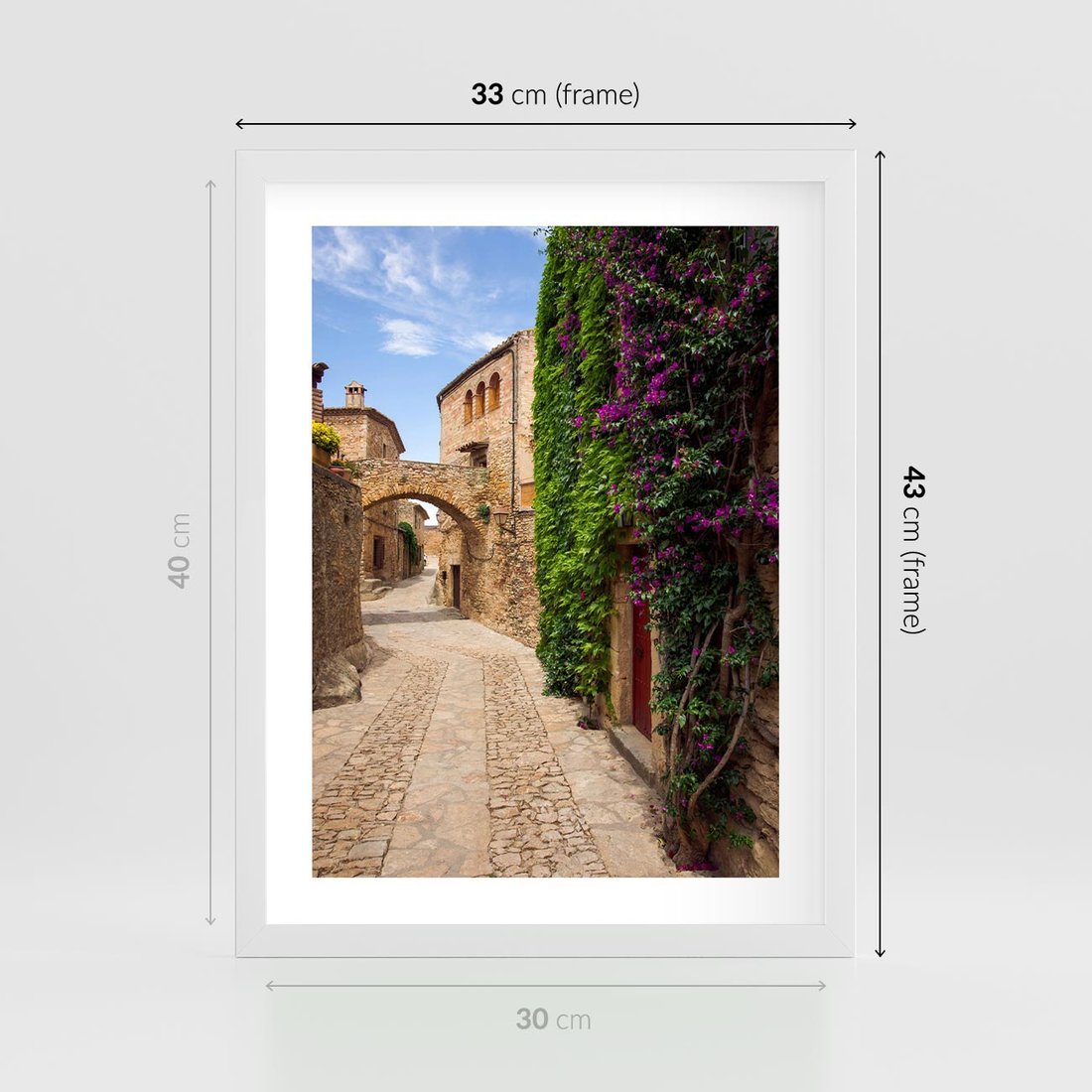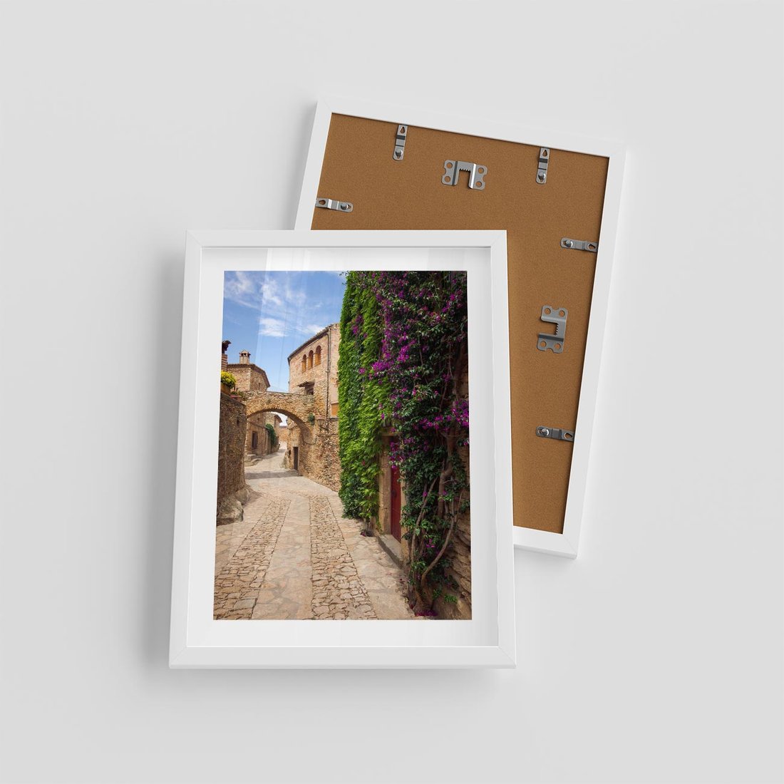 Plakat w ramie 30x40 - Uliczka pełna perspektywy i tajemnicy - uliczka, perspektywa - rama biała