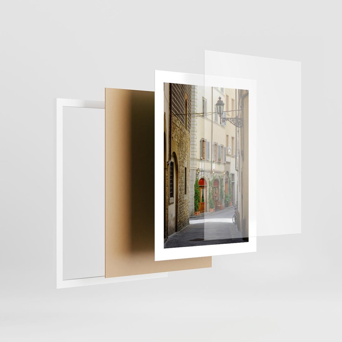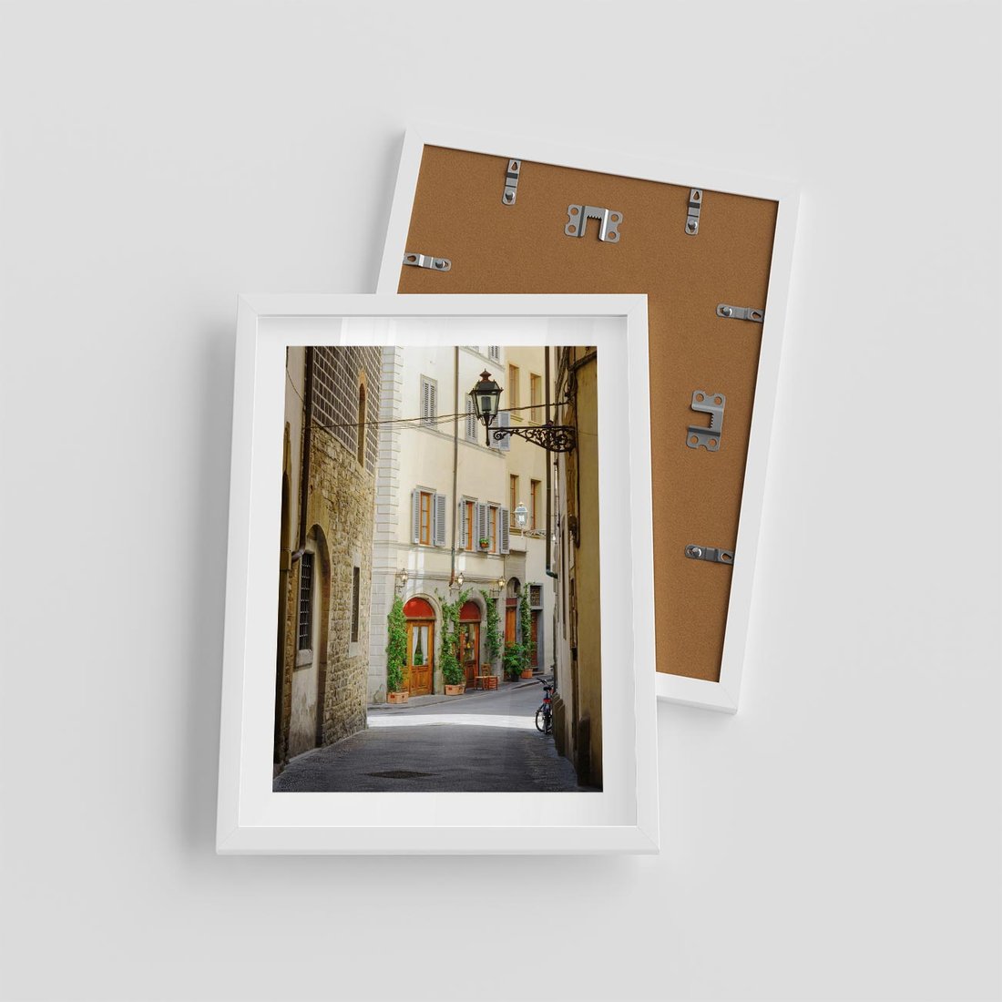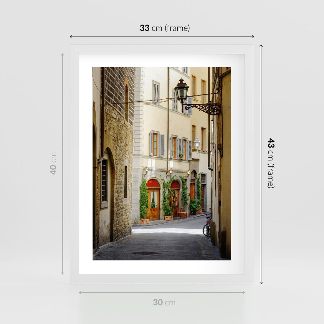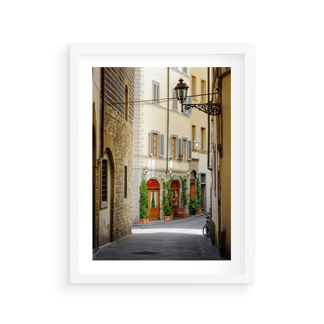 Plakat w ramie 30x40 - Uliczka: perspektywa miejskiego krajobrazu - uliczka, perspektywa - rama biała