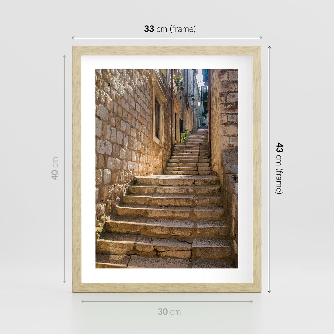 Plakat w ramie 30x40 - Uliczka: perspektywa miejskiego krajobrazu - uliczka, perspektywa - rama drewno