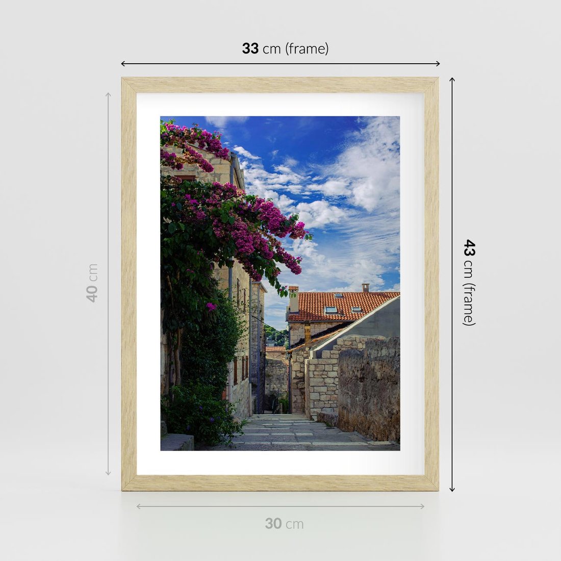 Plakat w ramie 30x40 - Uliczka: perspektywa w mieście - uliczka, perspektywa - rama drewno
