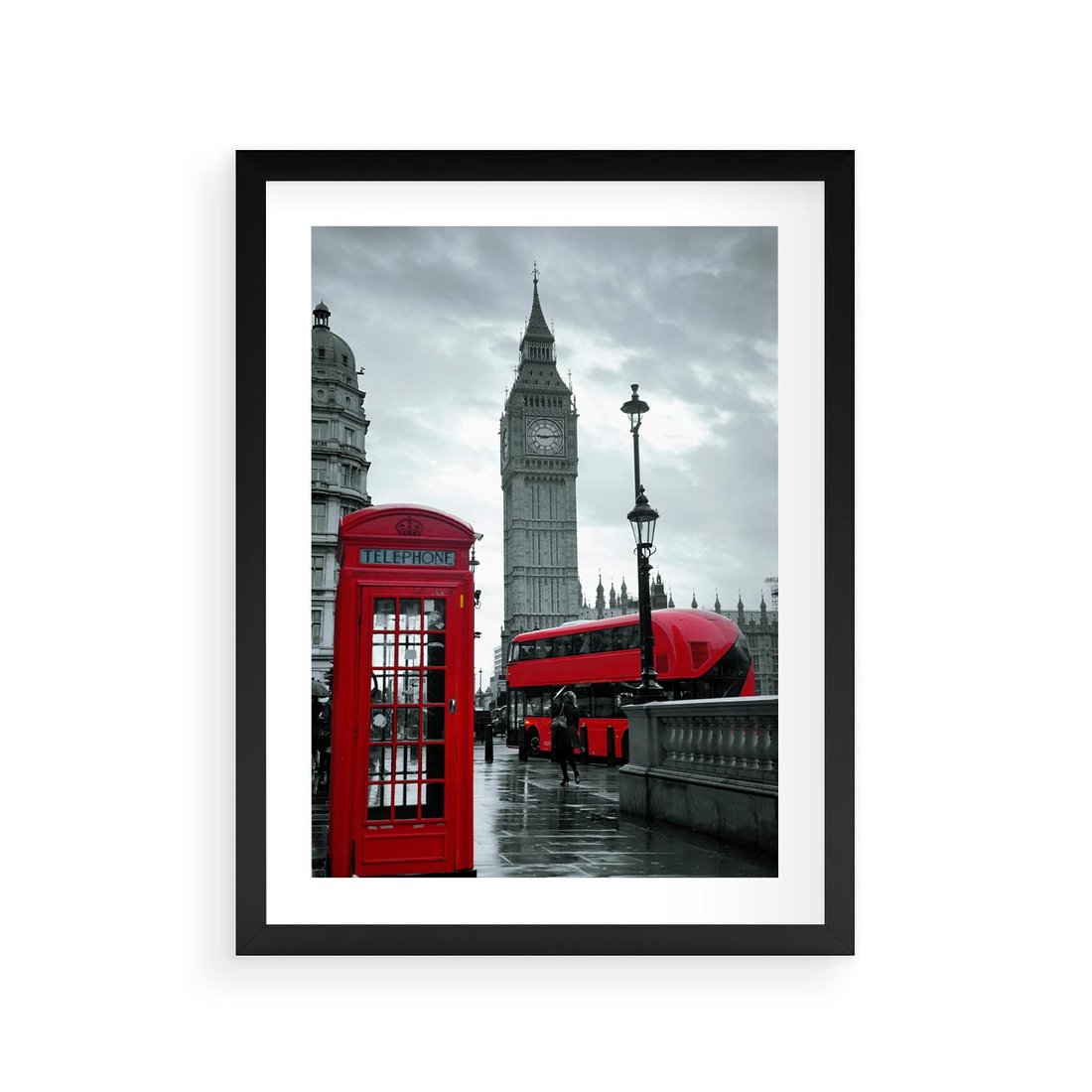 Plakat w ramie 30x40 - Uliczka z charakterystyczną budką w Londynie - Londyn, budka - rama czarna