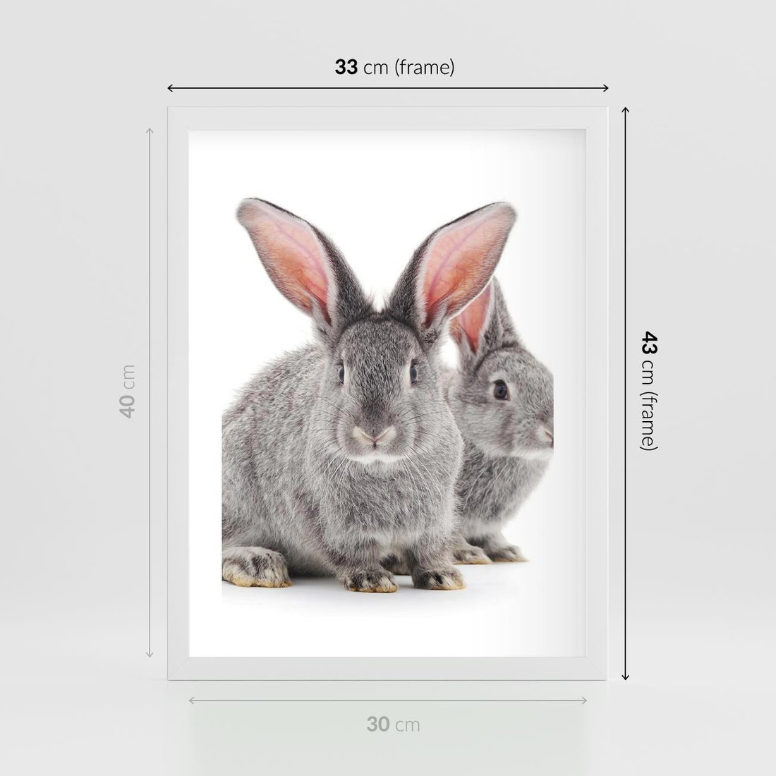 Plakat w ramie 30x40 - Uroczy królik wśród natury - królik, zając - rama biała