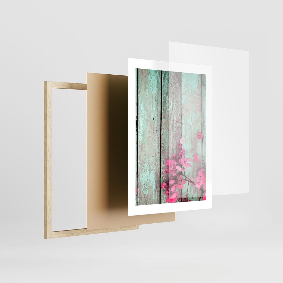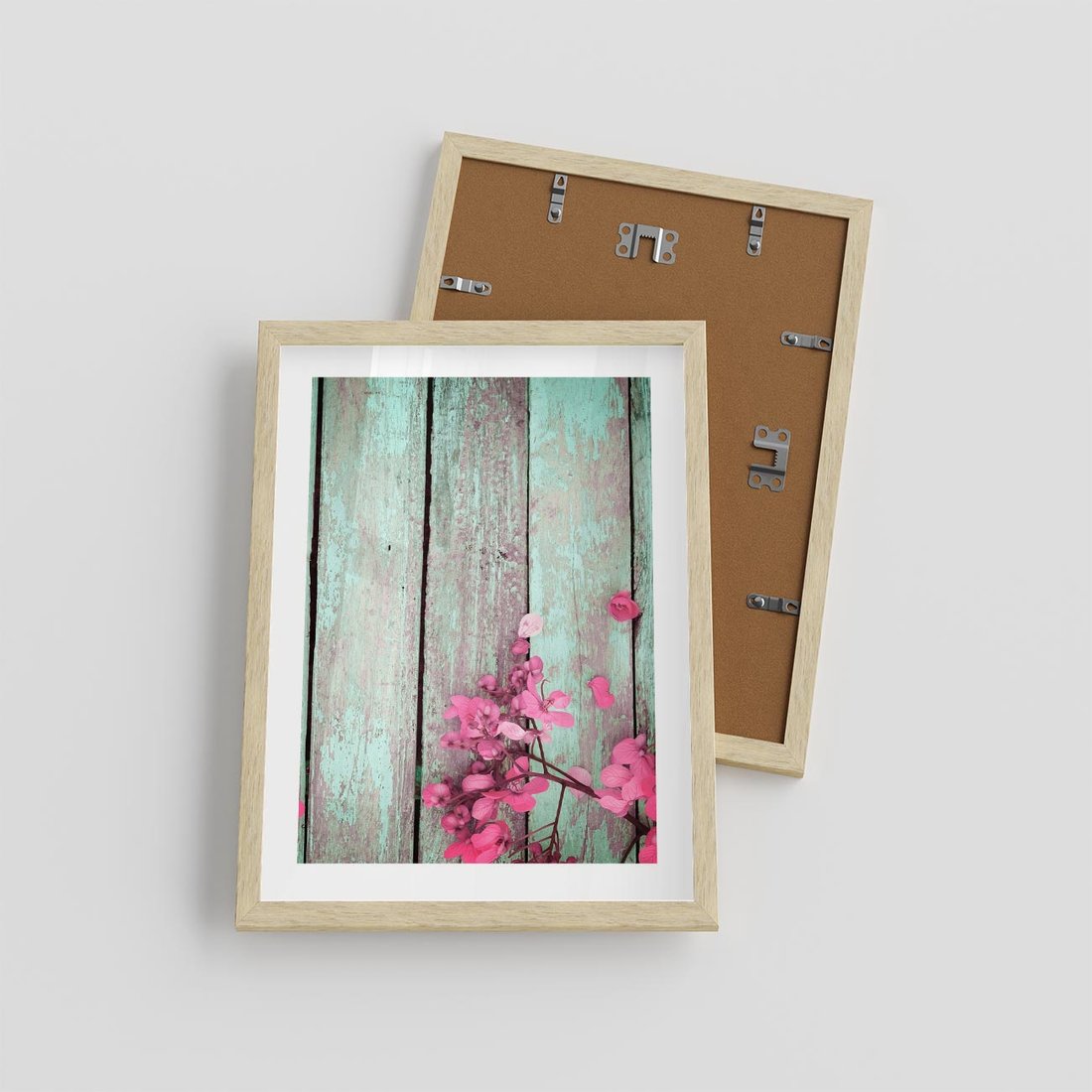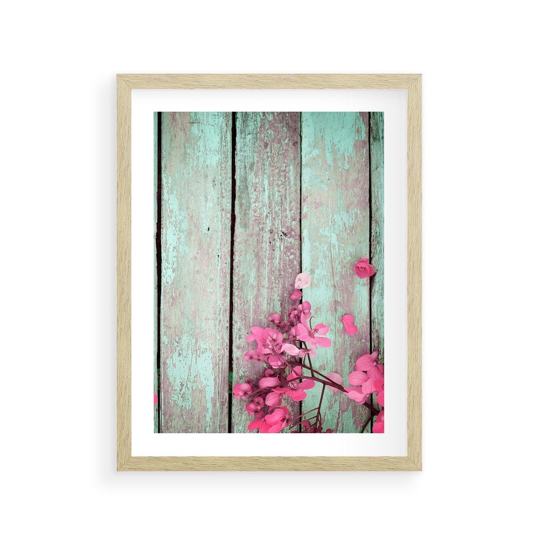 Plakat w ramie 30x40 - Urok Dawnych Czasów - kwiaty, deski - rama drewno