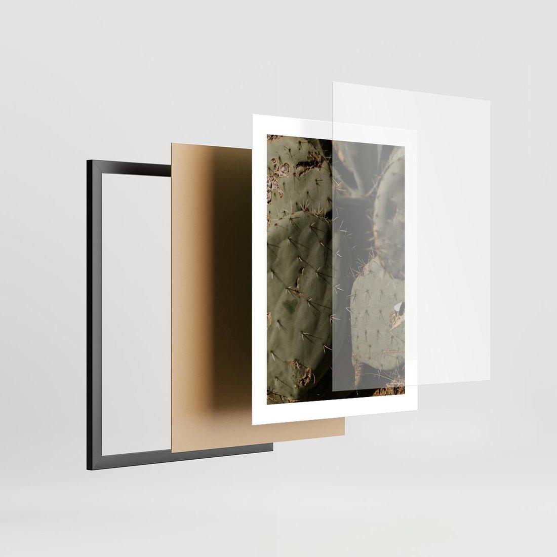 Plakat w ramie 30x40 - Urok Egzotyki - kaktusy, boho - rama czarna