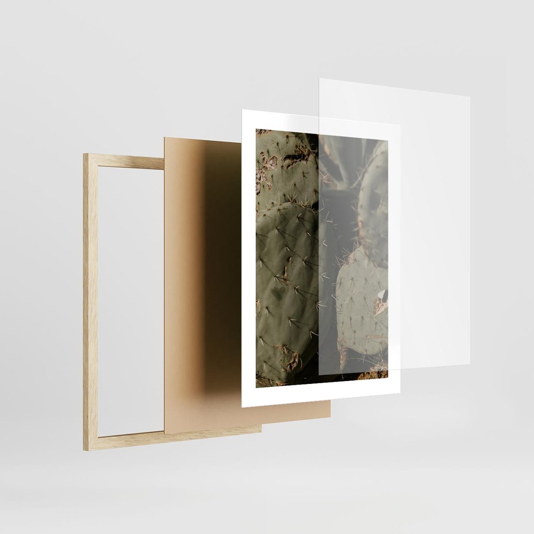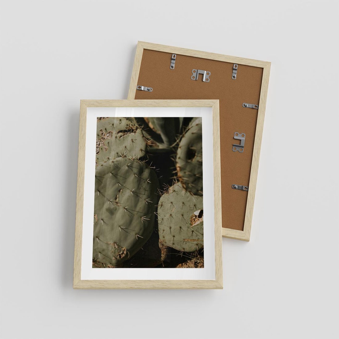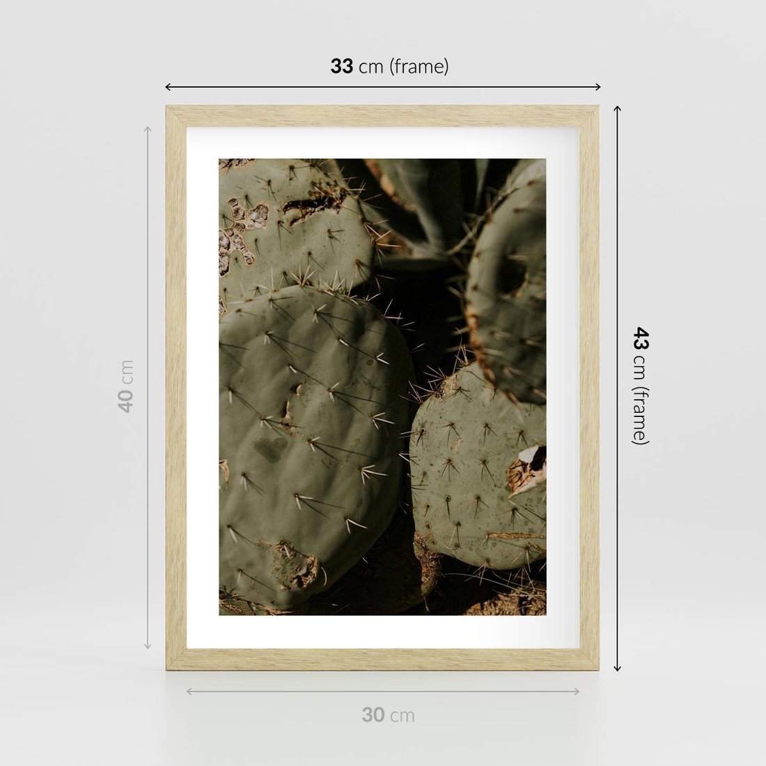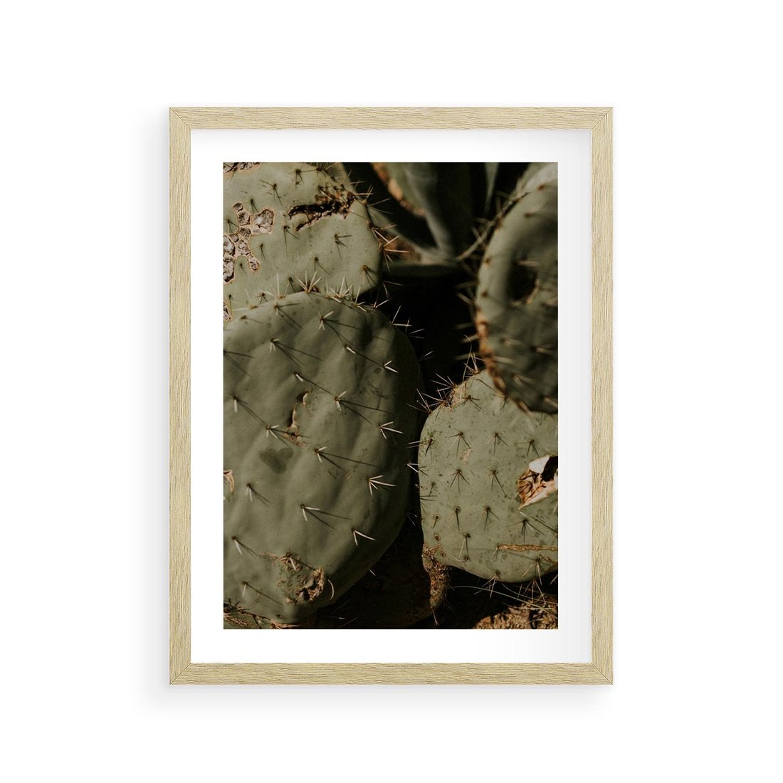 Plakat w ramie 30x40 - Urok Egzotyki - kaktusy, boho - rama drewno