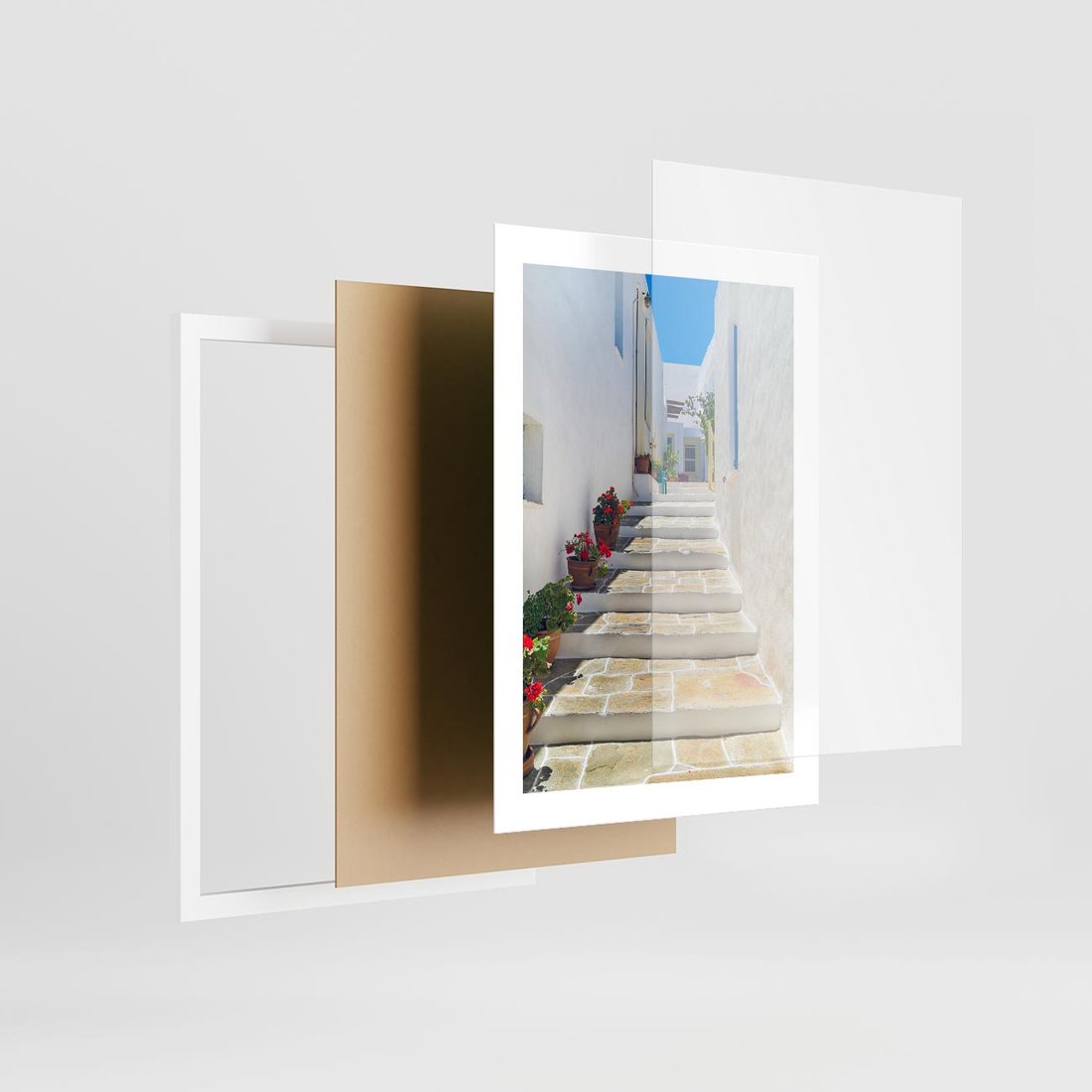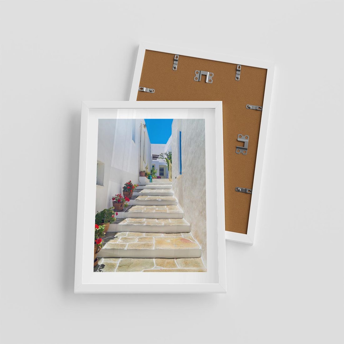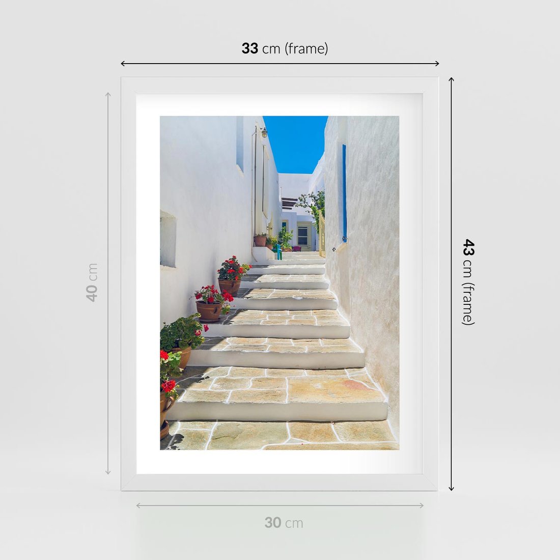 Plakat w ramie 30x40 - Urok Greckiej Uliczki - grecka, uliczka - rama biała