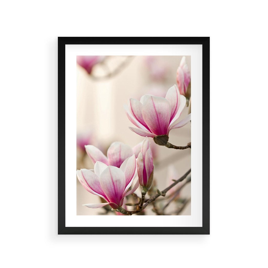 Plakat w ramie 30x40 - Urok Magnolii - magnolie, kwiaty - rama czarna