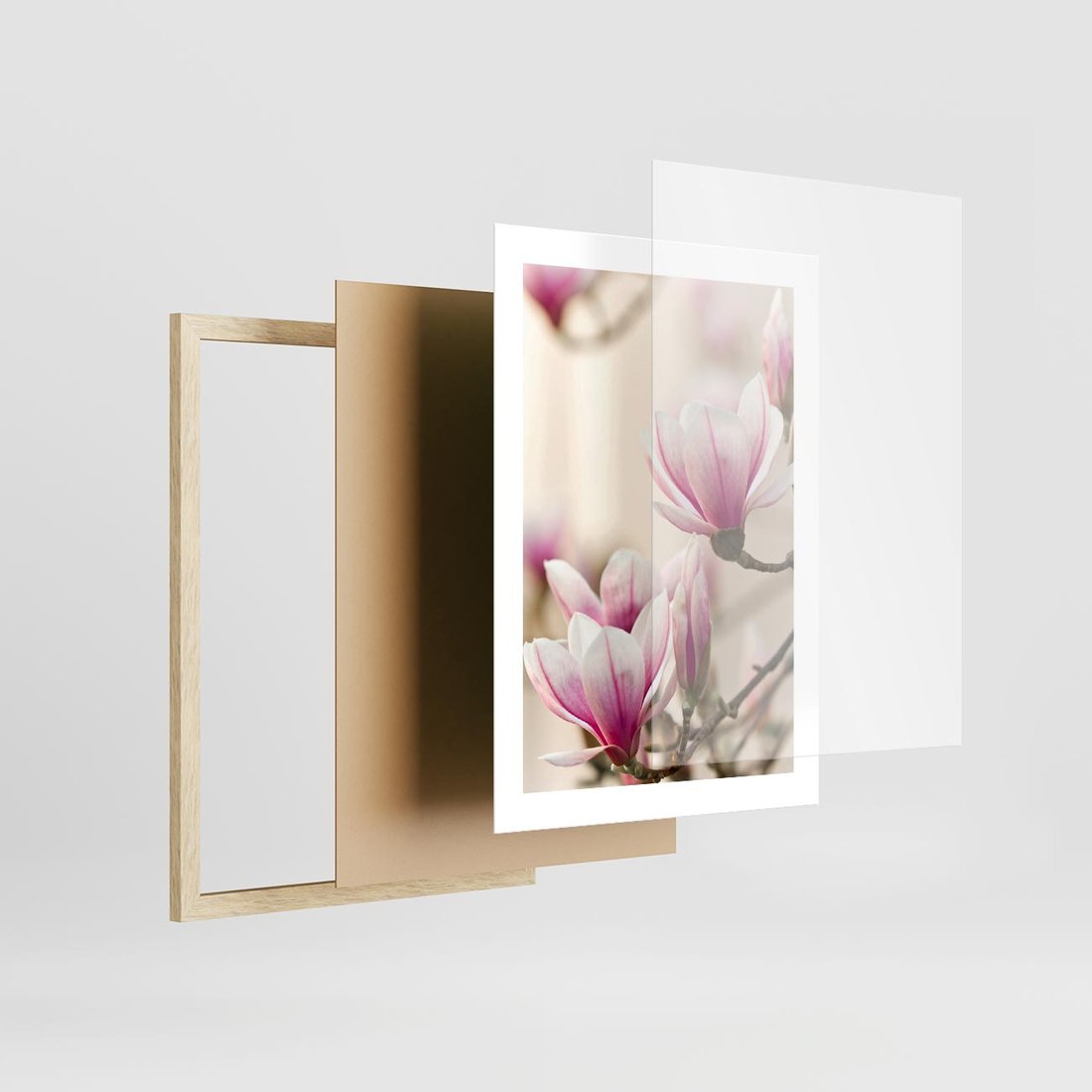 Plakat w ramie 30x40 - Urok Magnolii - magnolie, kwiaty - rama drewno