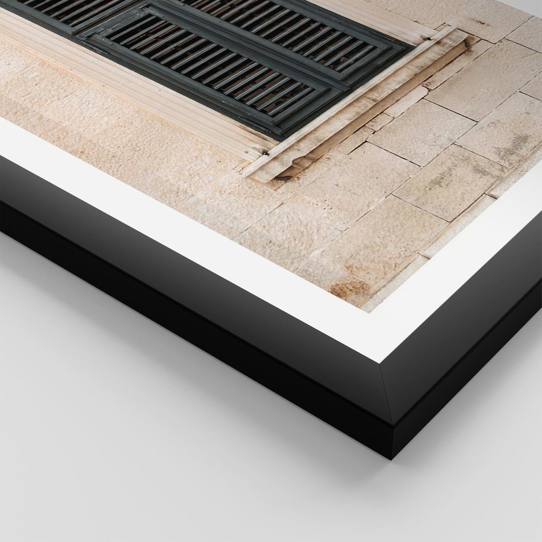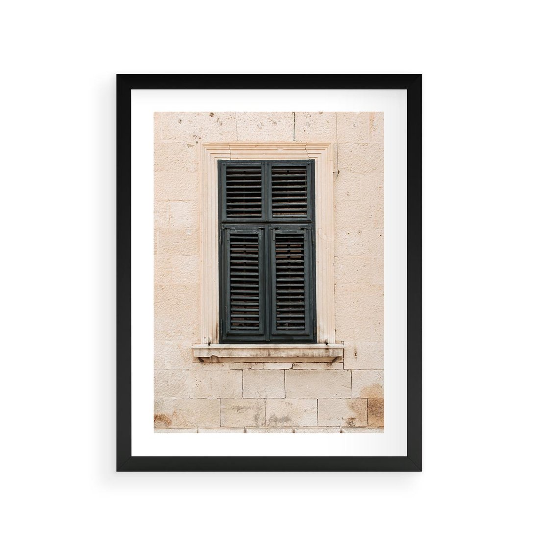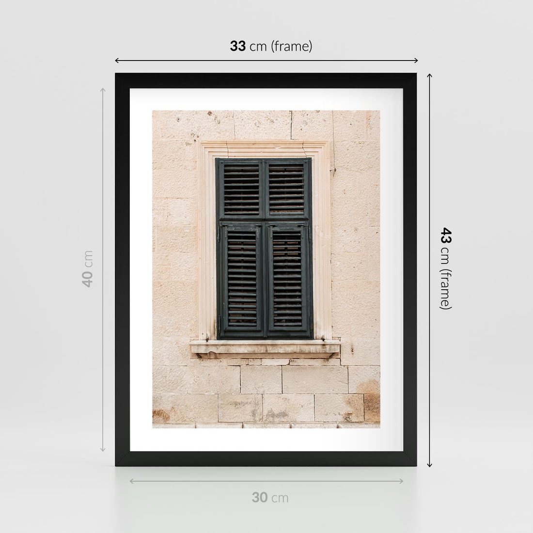Plakat w ramie 30x40 - Urok Starego Okna z Zielonymi Okiennicami - stare okno, kamienica - rama czarna