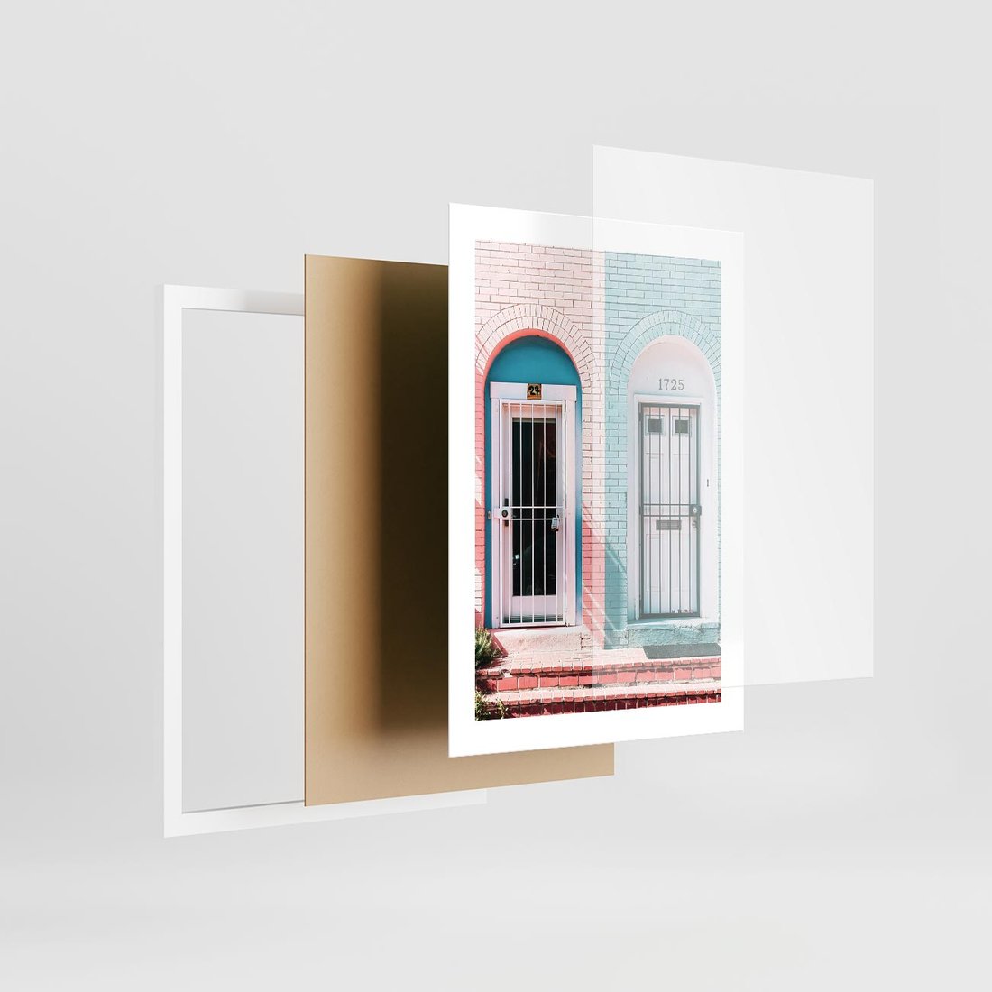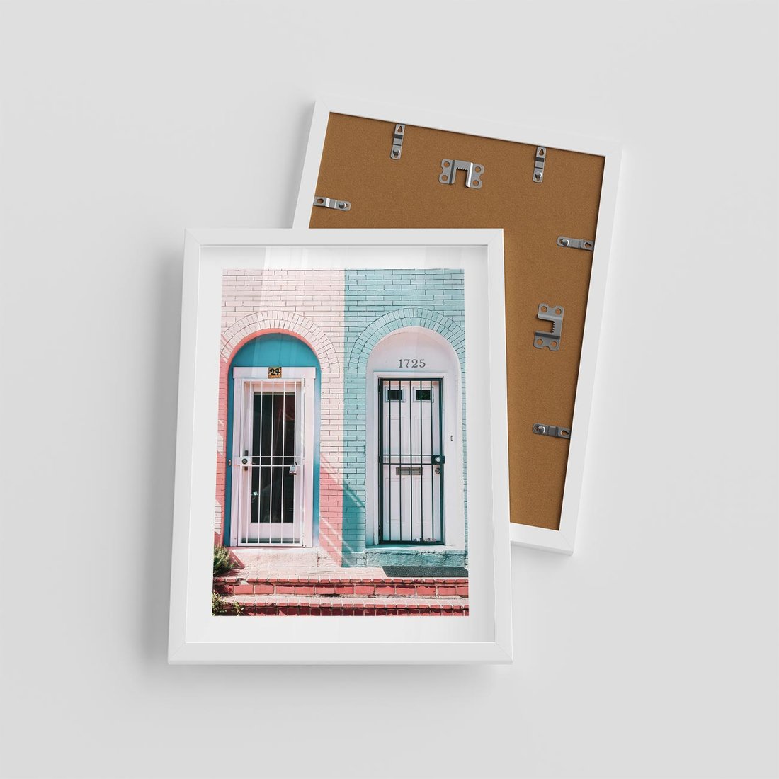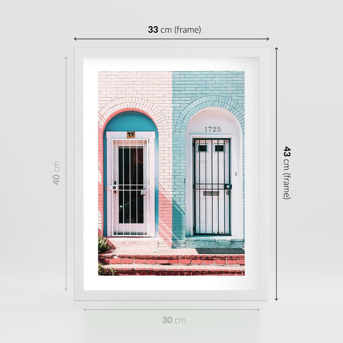 Plakat w ramie 30x40 - Urok Starych Drzwi - stare retro drzwi kamienicy, pastelowe kolory - rama biała