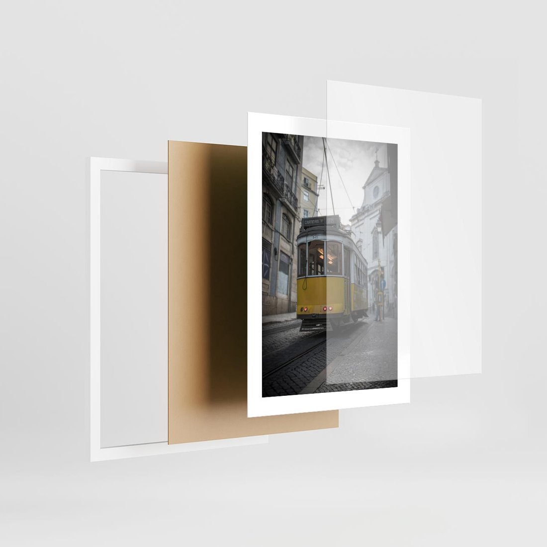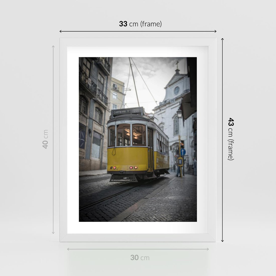 Plakat w ramie 30x40 - Urok tramwajów Lizbony - tramwaj, Lizbona - rama biała