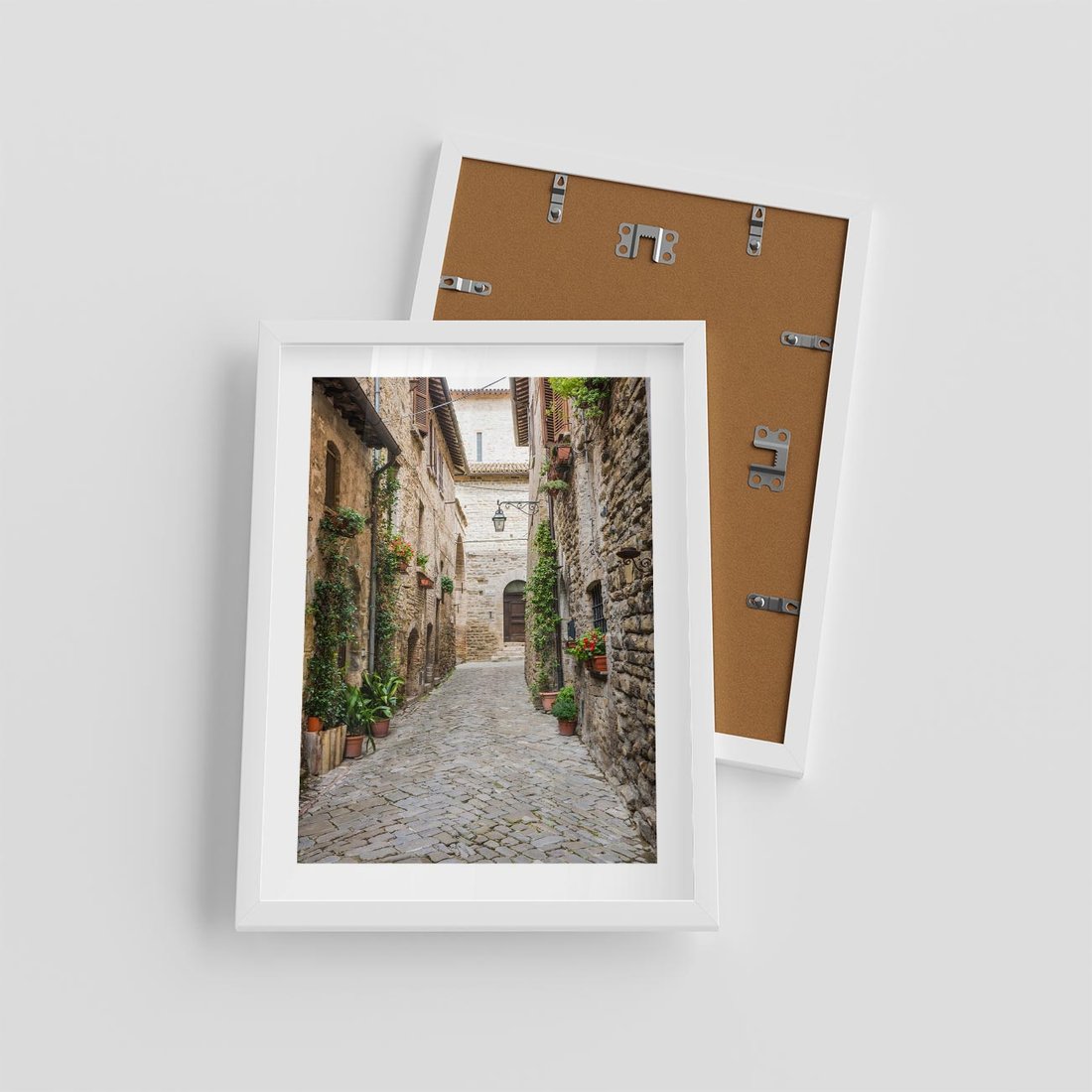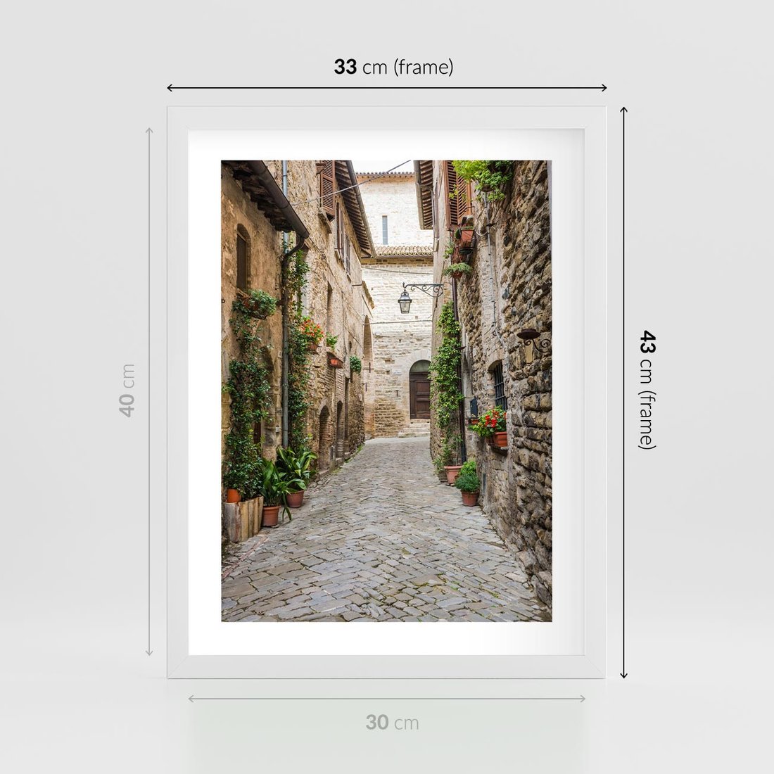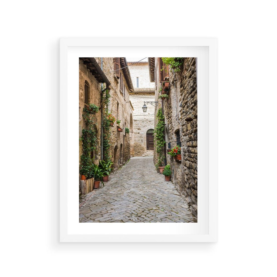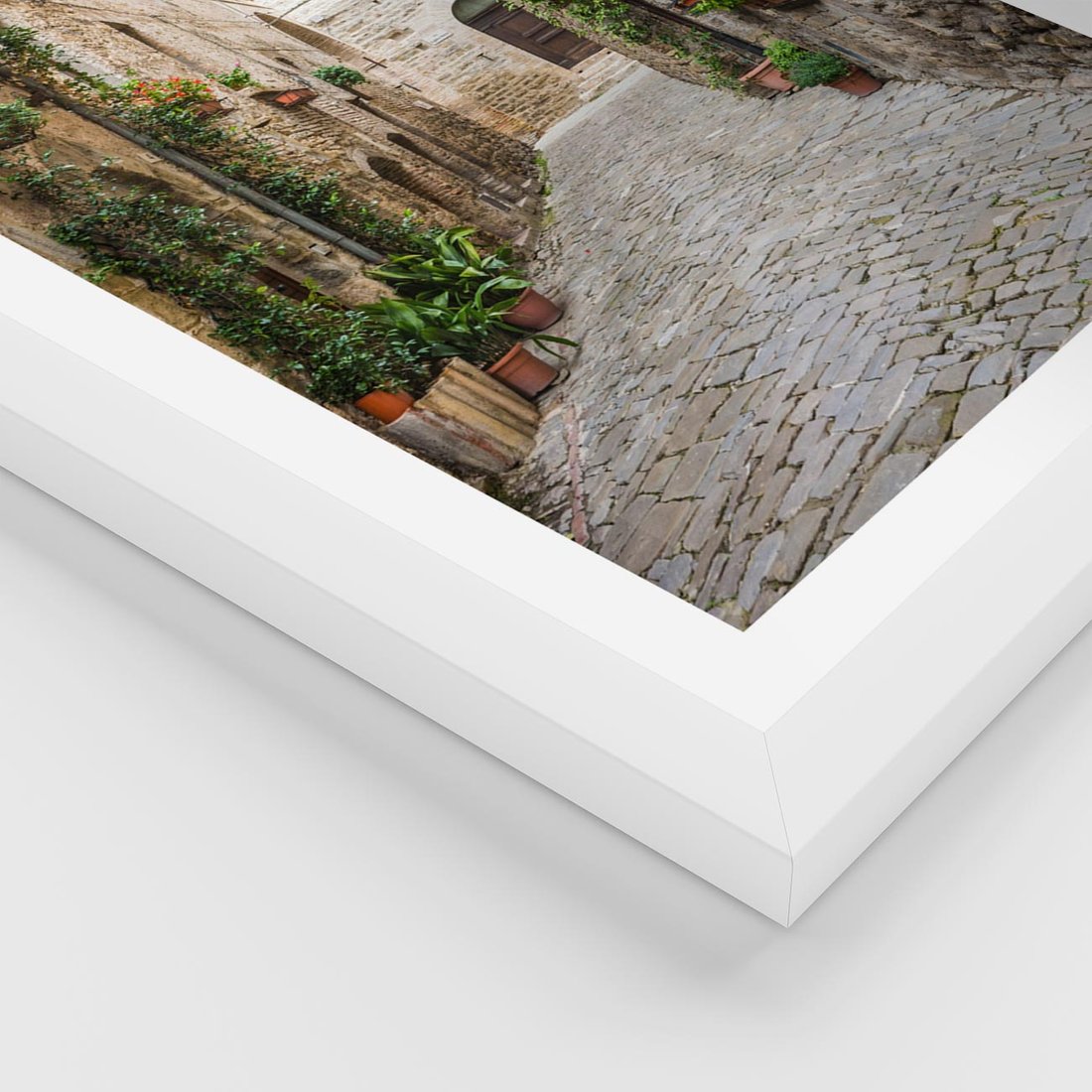 Plakat w ramie 30x40 - Urok Uliczki we Włoszech - uliczka, Włochy - rama biała