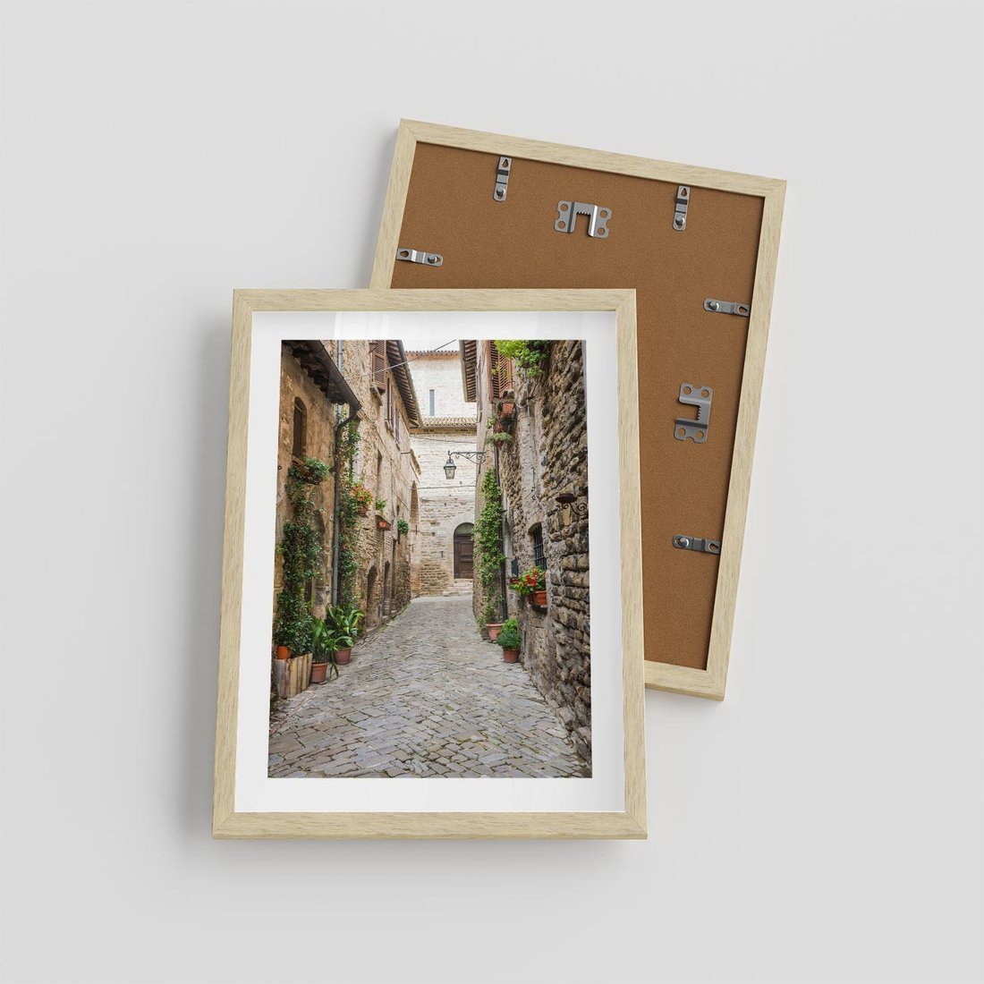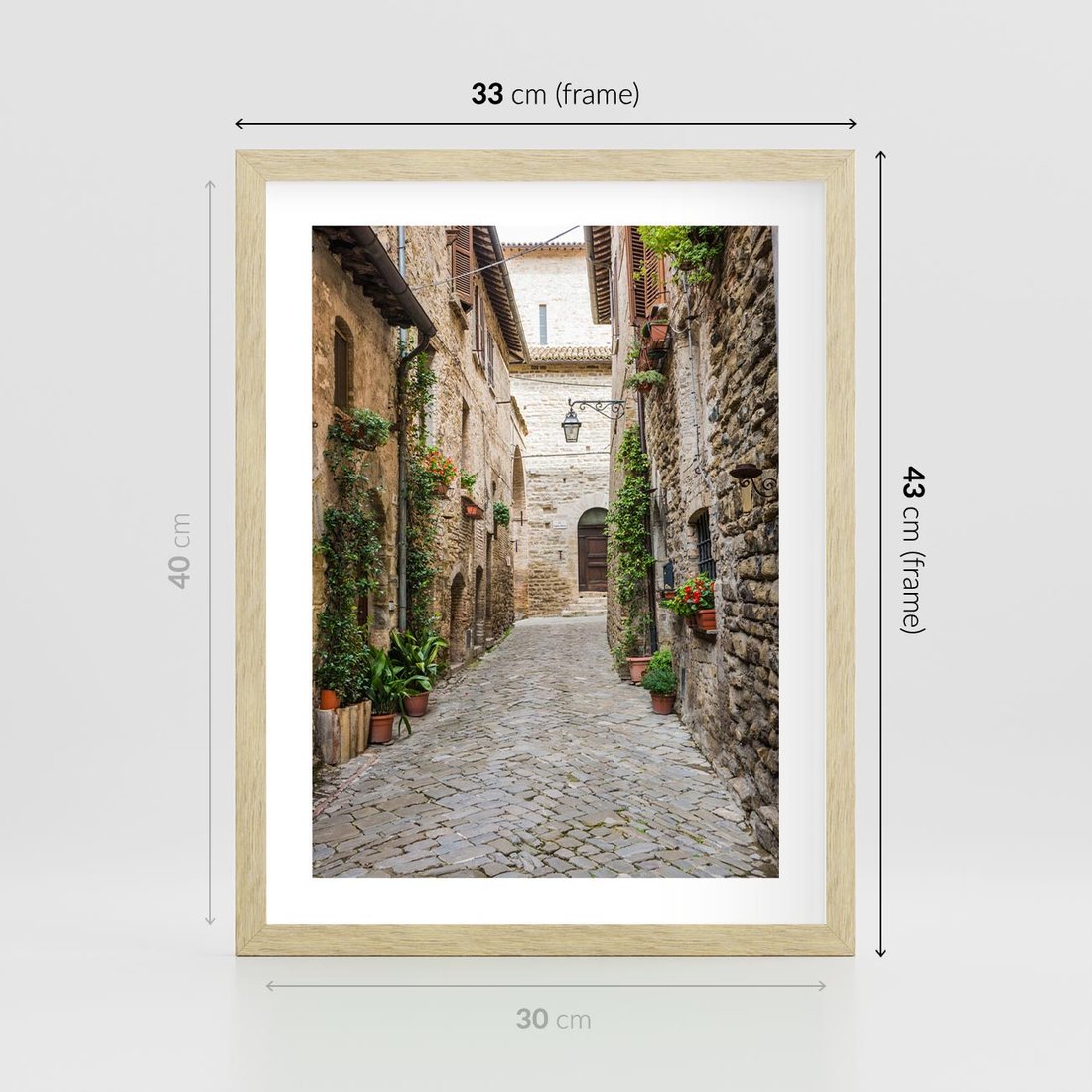 Plakat w ramie 30x40 - Urok Uliczki we Włoszech - uliczka, Włochy - rama drewno