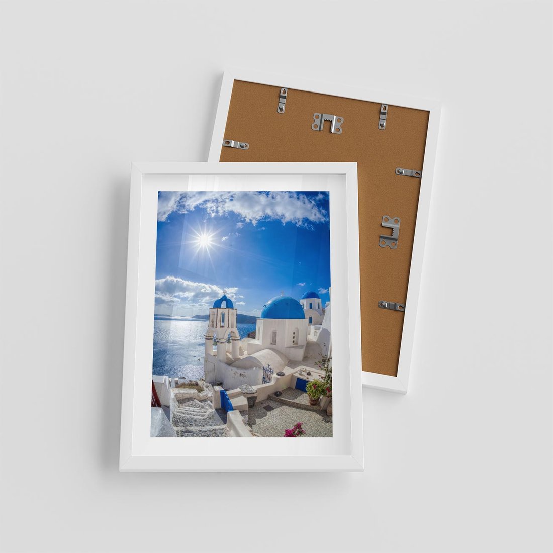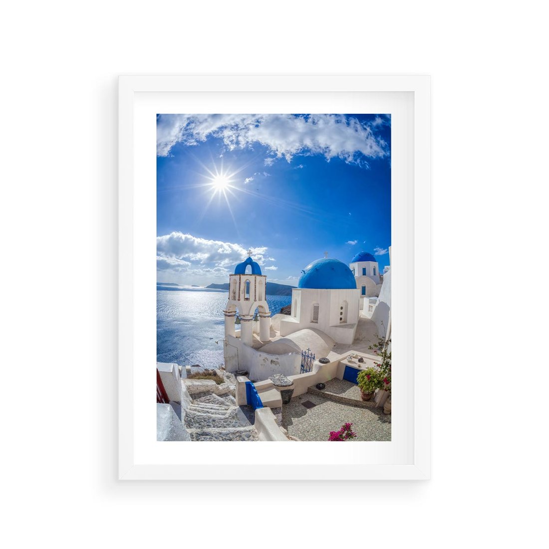 Plakat w ramie 30x40 - Uroki Santorini we Włoszech - Santorini, Włochy - rama biała