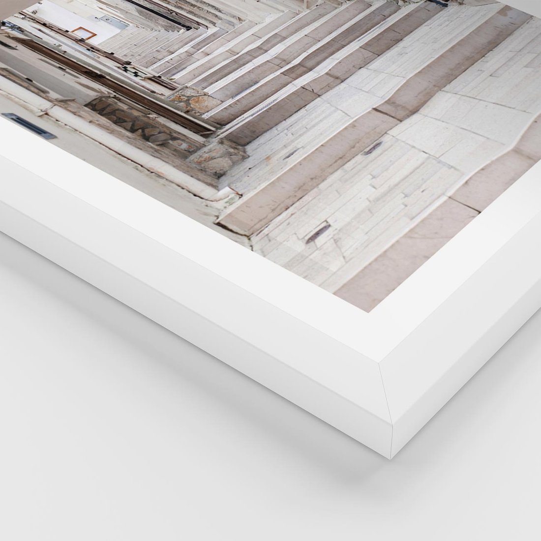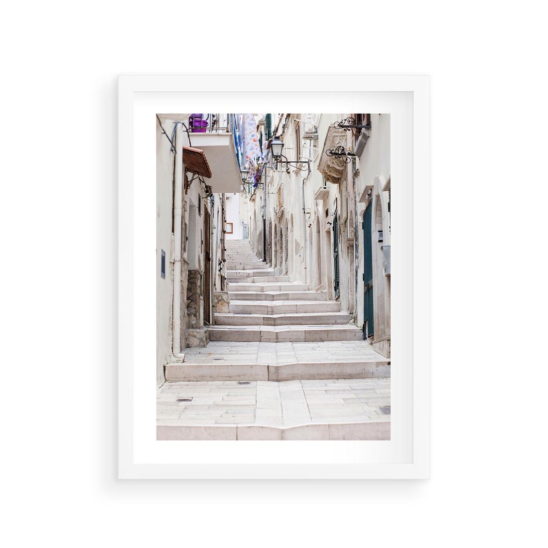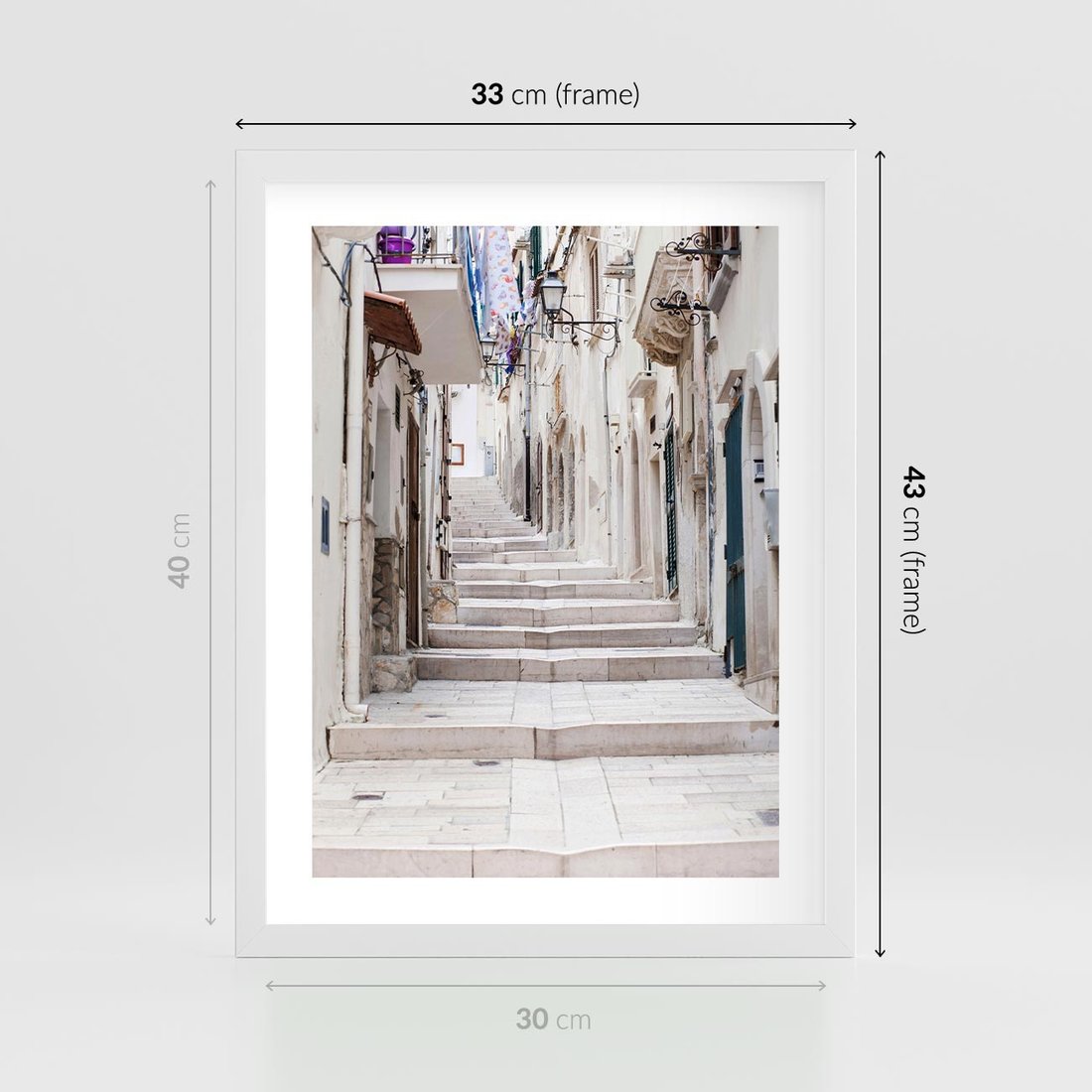 Plakat w ramie 30x40 - Urokliwa uliczka w perspektywie - uliczka, perspektywa - rama biała