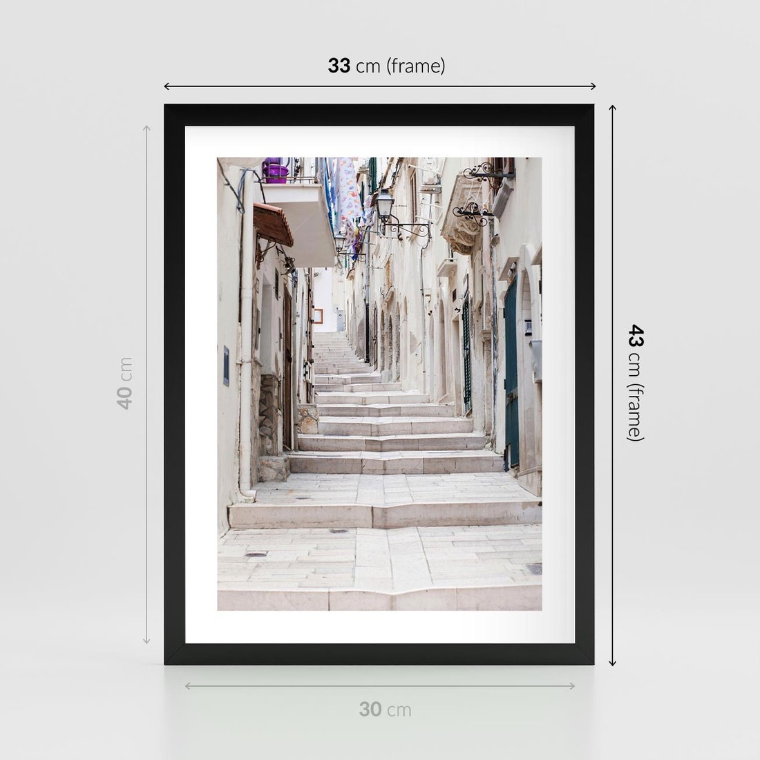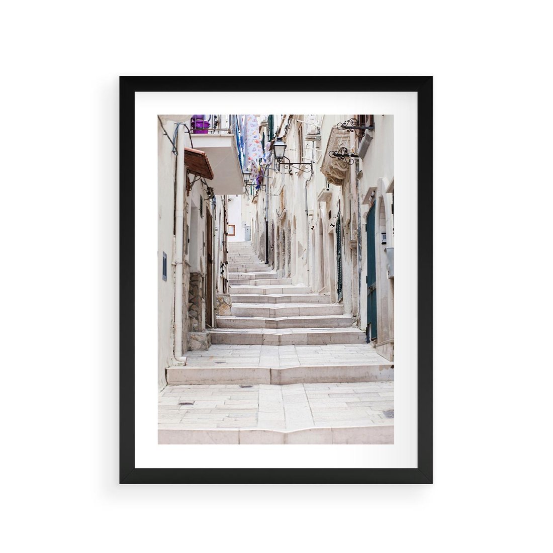 Plakat w ramie 30x40 - Urokliwa uliczka w perspektywie - uliczka, perspektywa - rama czarna