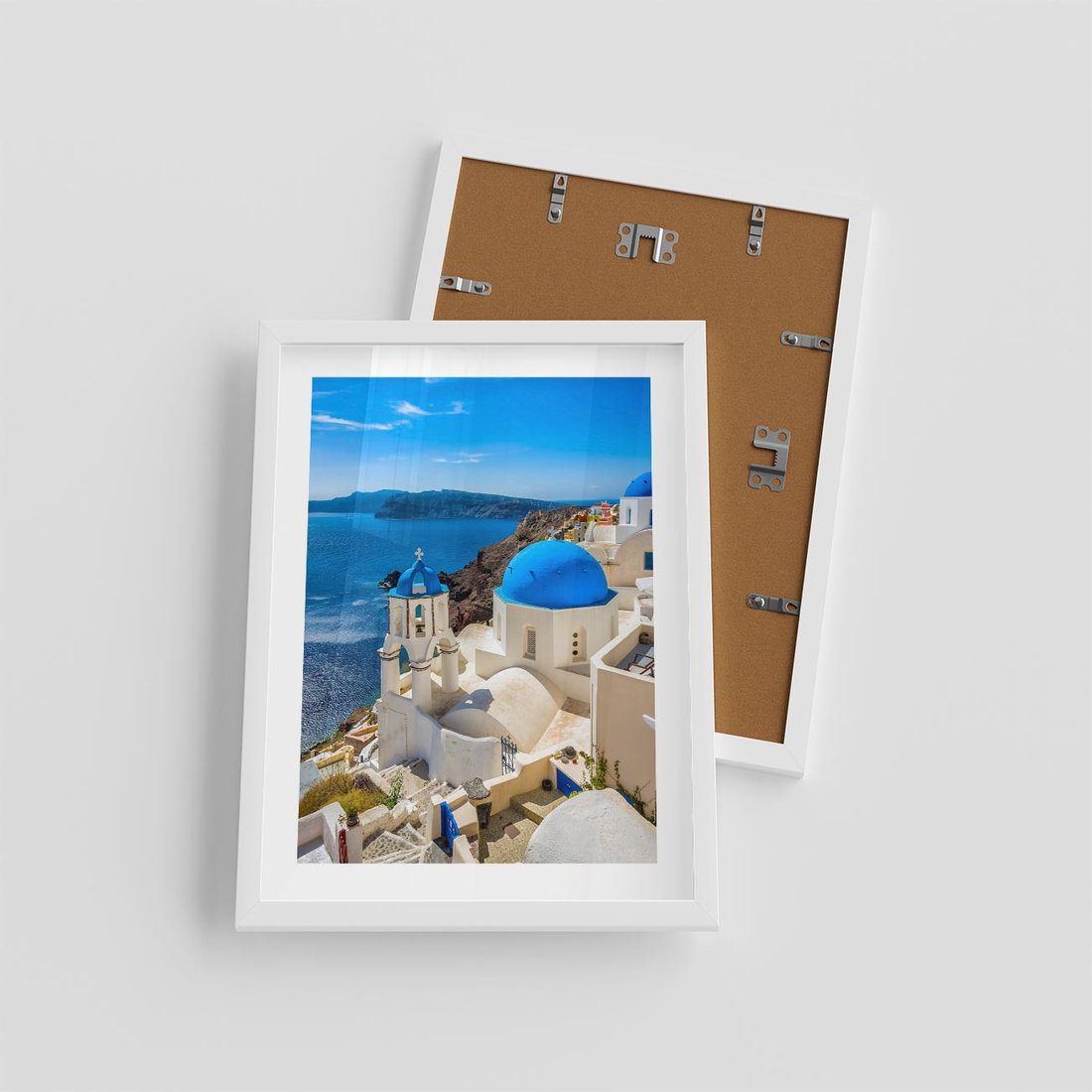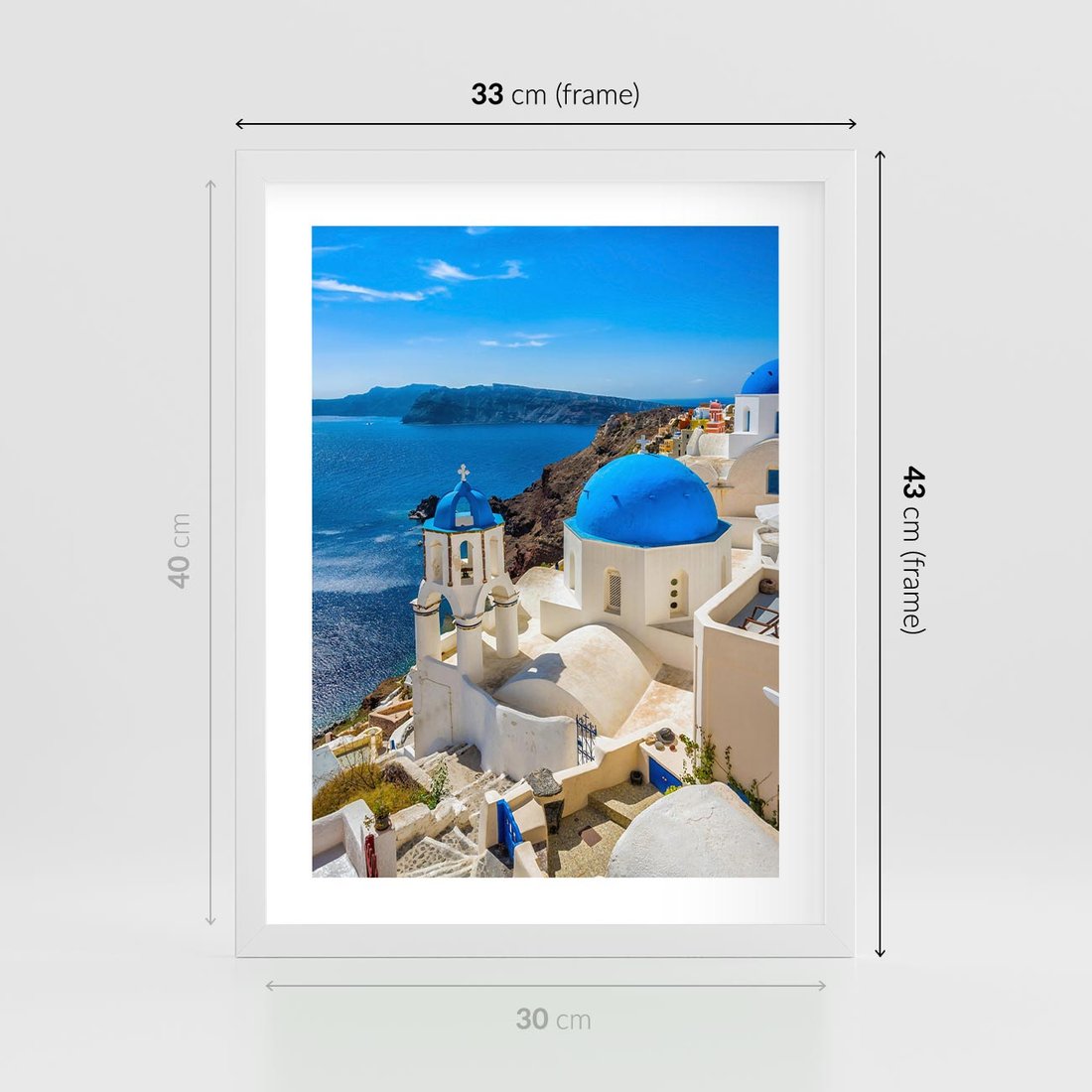 Plakat w ramie 30x40 - Urokliwy widok na Santorini - Santorini, widok - rama biała