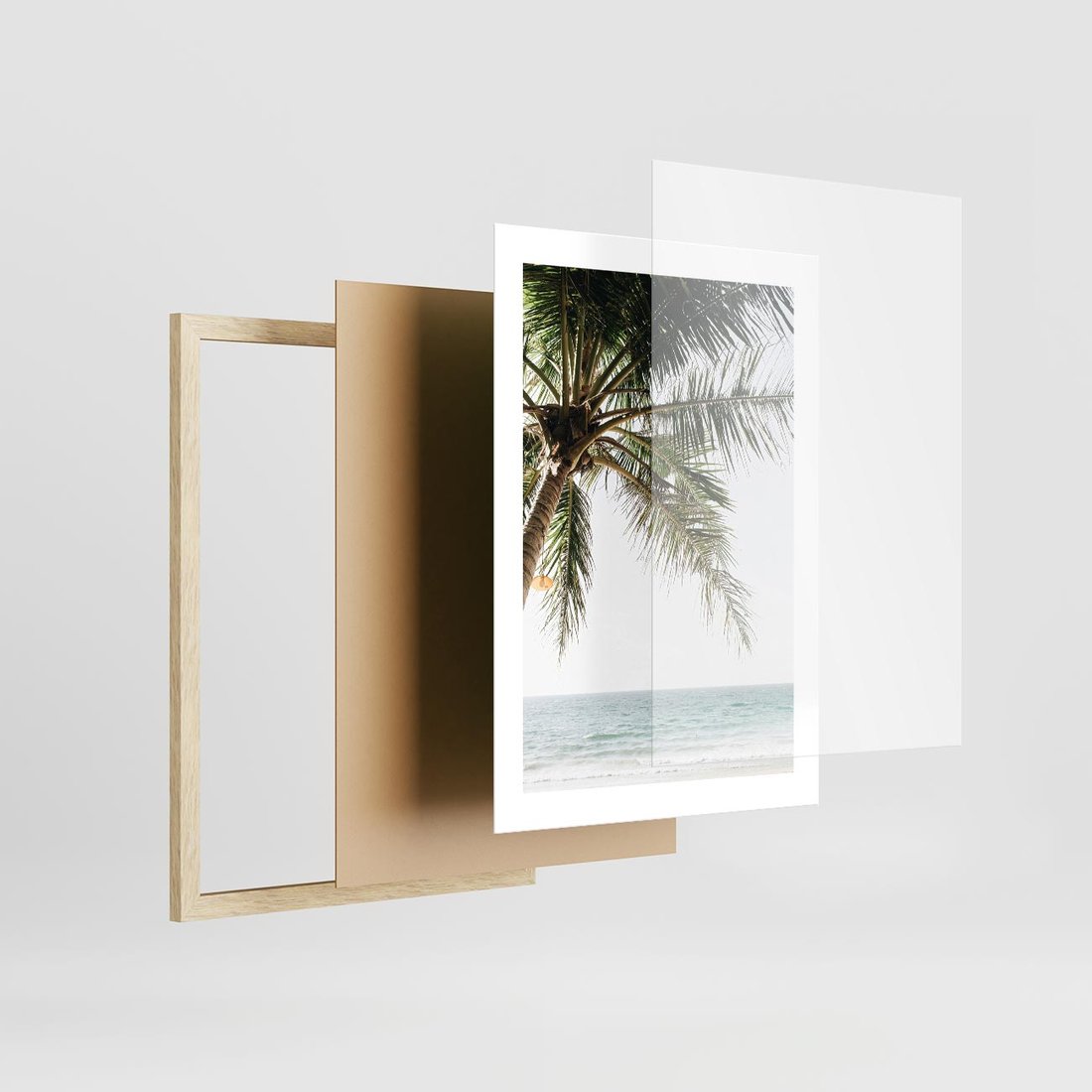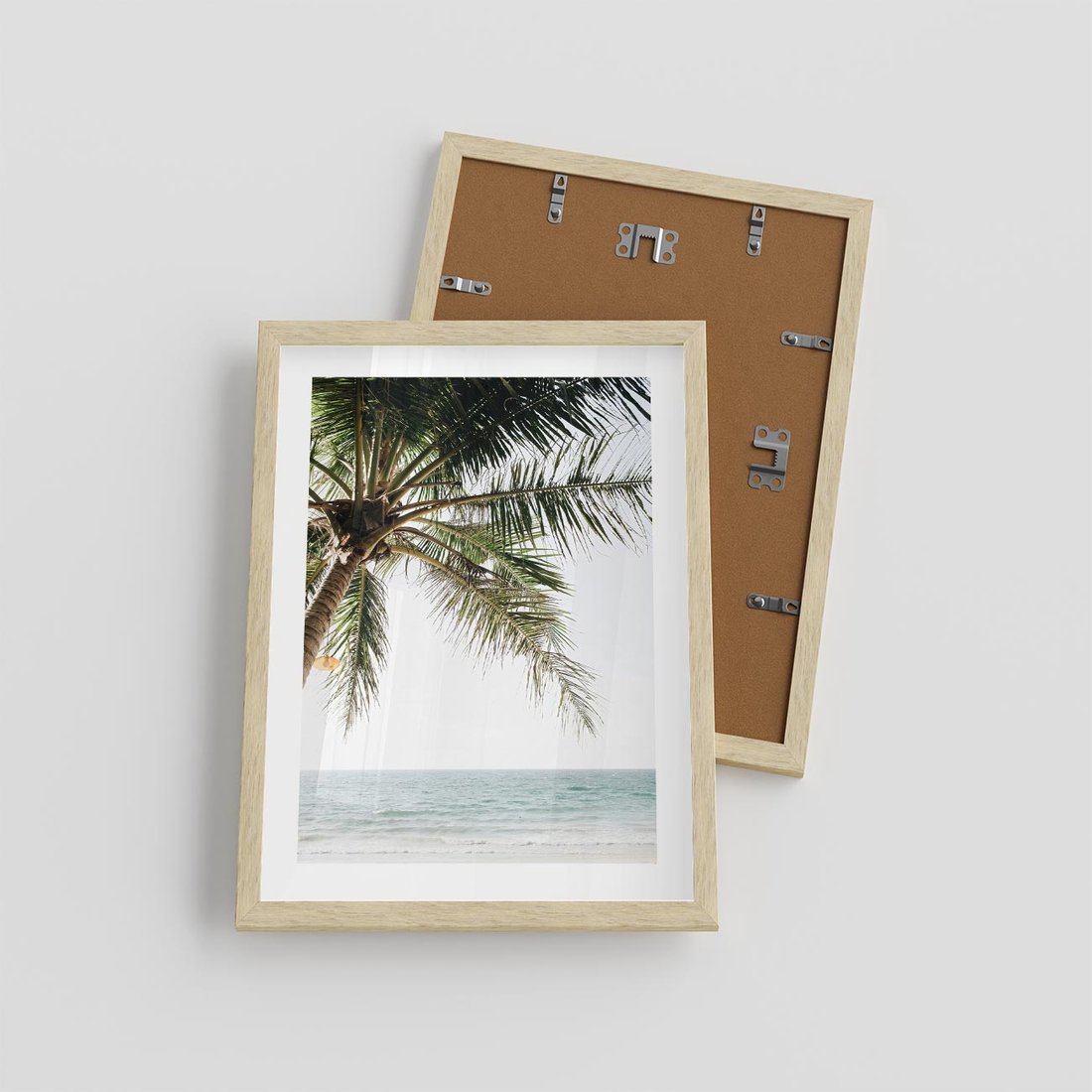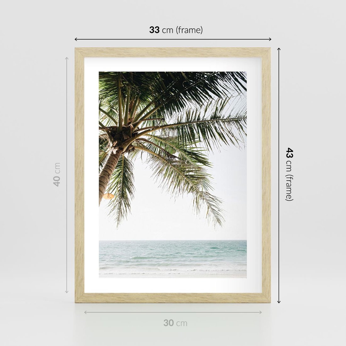Plakat w ramie 30x40 - Wakacyjne Marzenie - palma nad morzem, - rama drewno