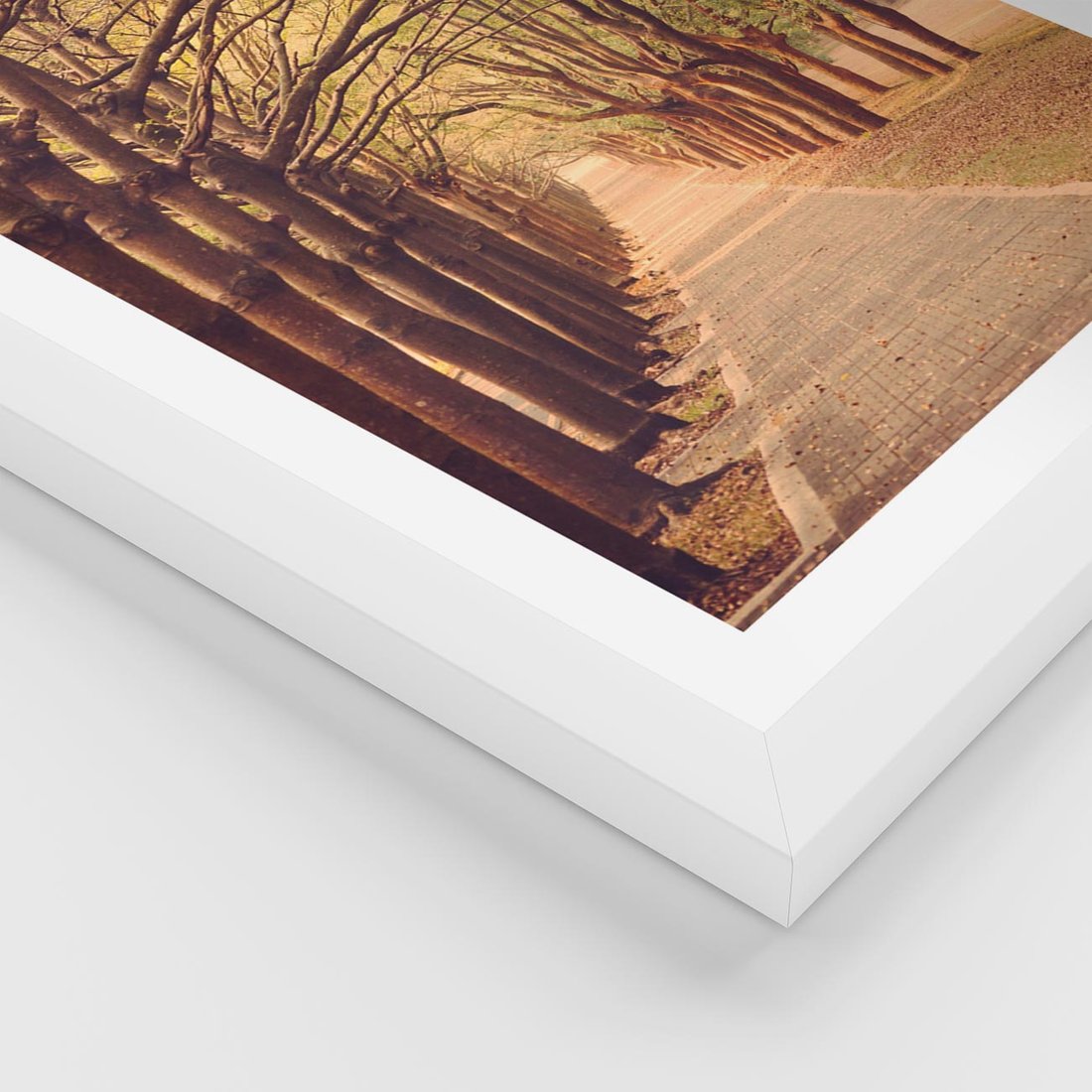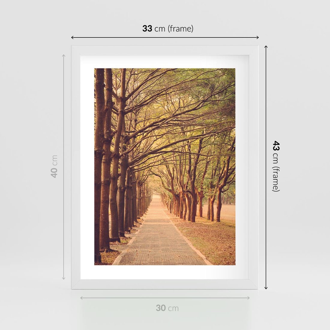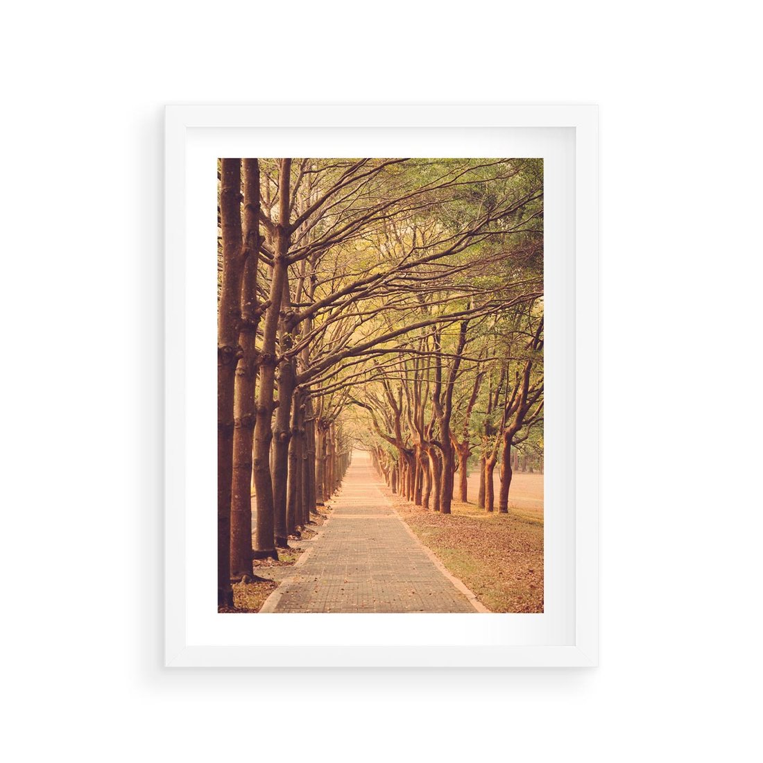 Plakat w ramie 30x40 - Wędrówka między drzewami - droga, drzewa - rama biała