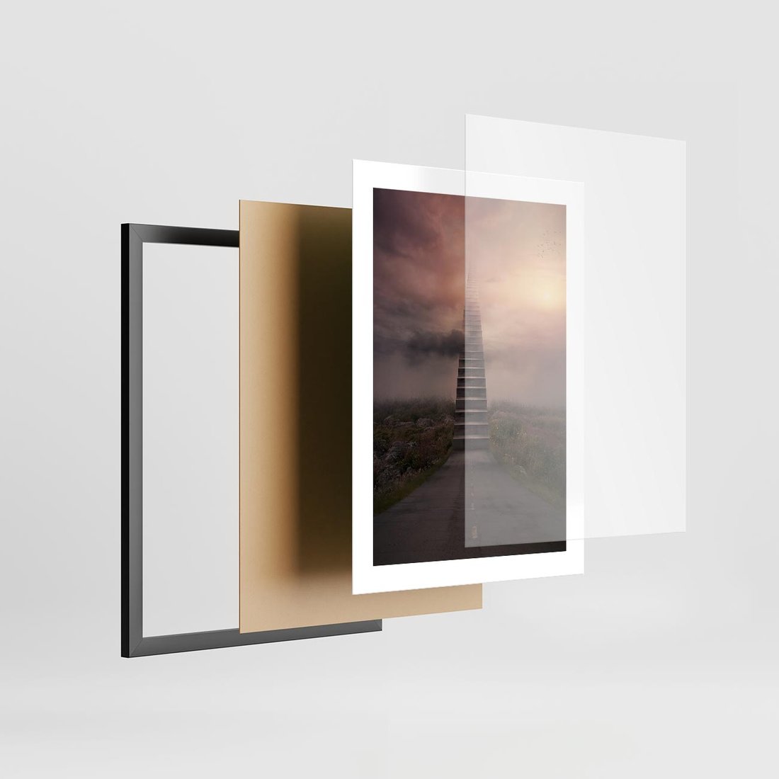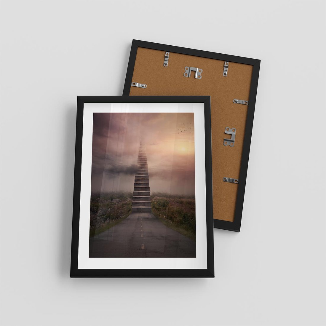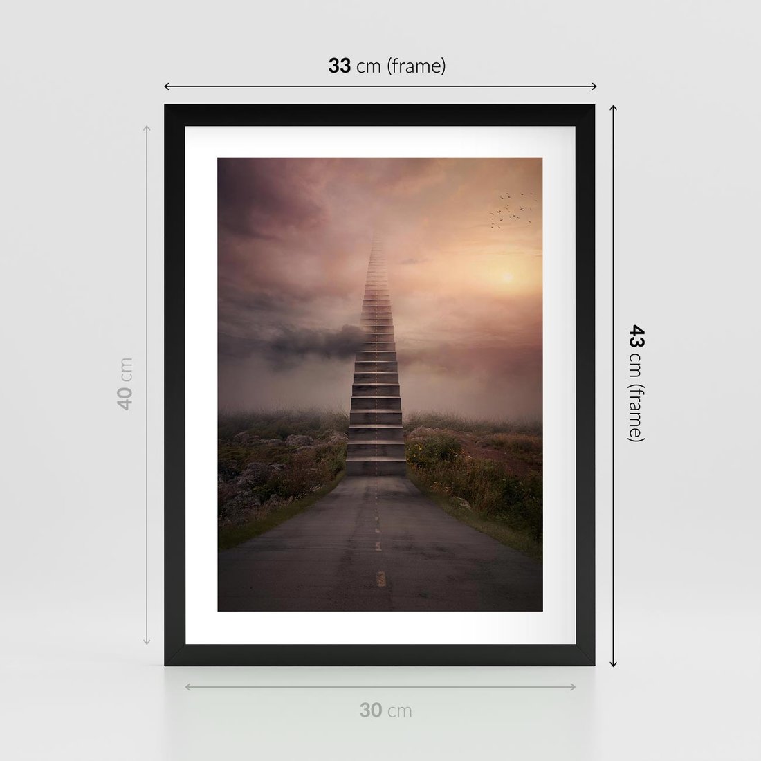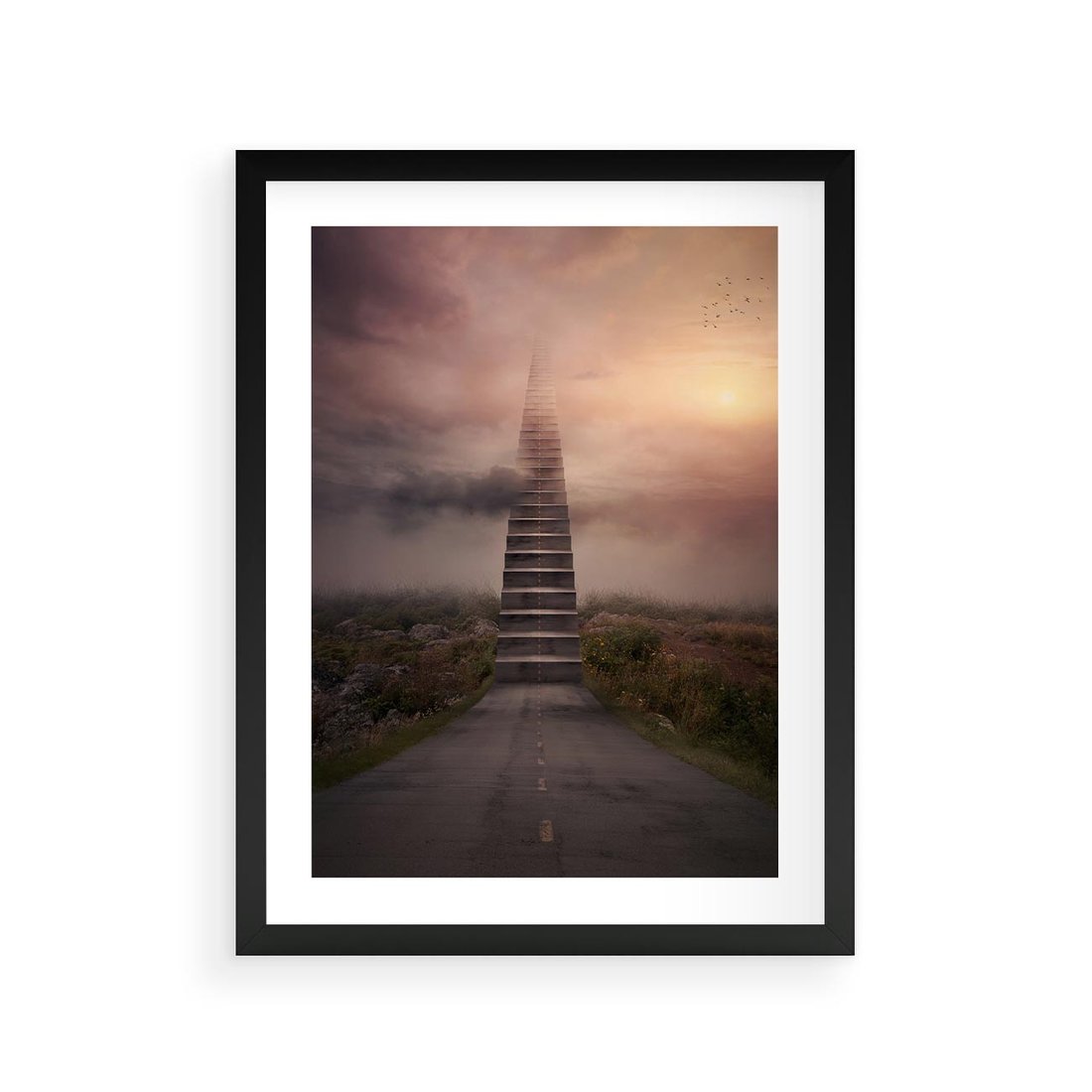 Plakat w ramie 30x40 - Wędrówka po malowniczej drodze - droga, schody - rama czarna