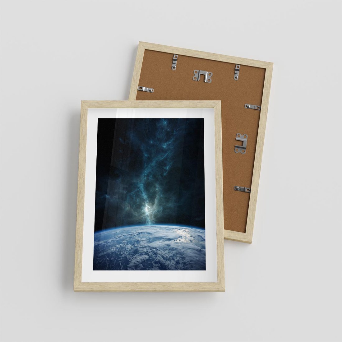 Przeniknij w nieodkryte rejony kosmosu dzięki obrazowi na płótnie przedstawiającemu Ziemię. Przenieś się w podróż przez galaktyki, obserwując piękno kosmicznych krajobrazów i tajemnicze głębiny wszechświata.