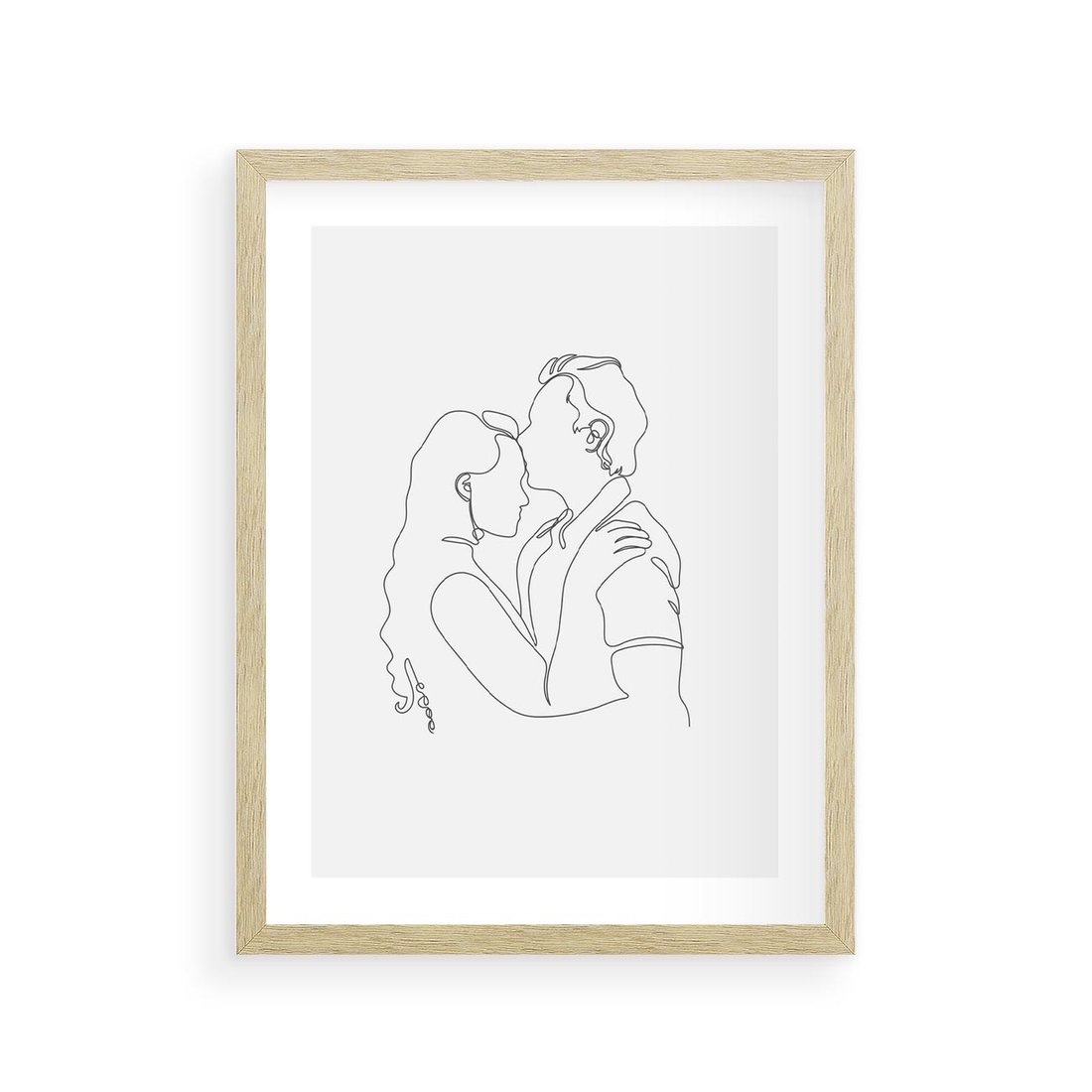 Naszkicowana jedną linią para zakochanych - kobieta i mężczyzna - symbolizuje ich połączenie i bliskość w minimalistyczny sposób.