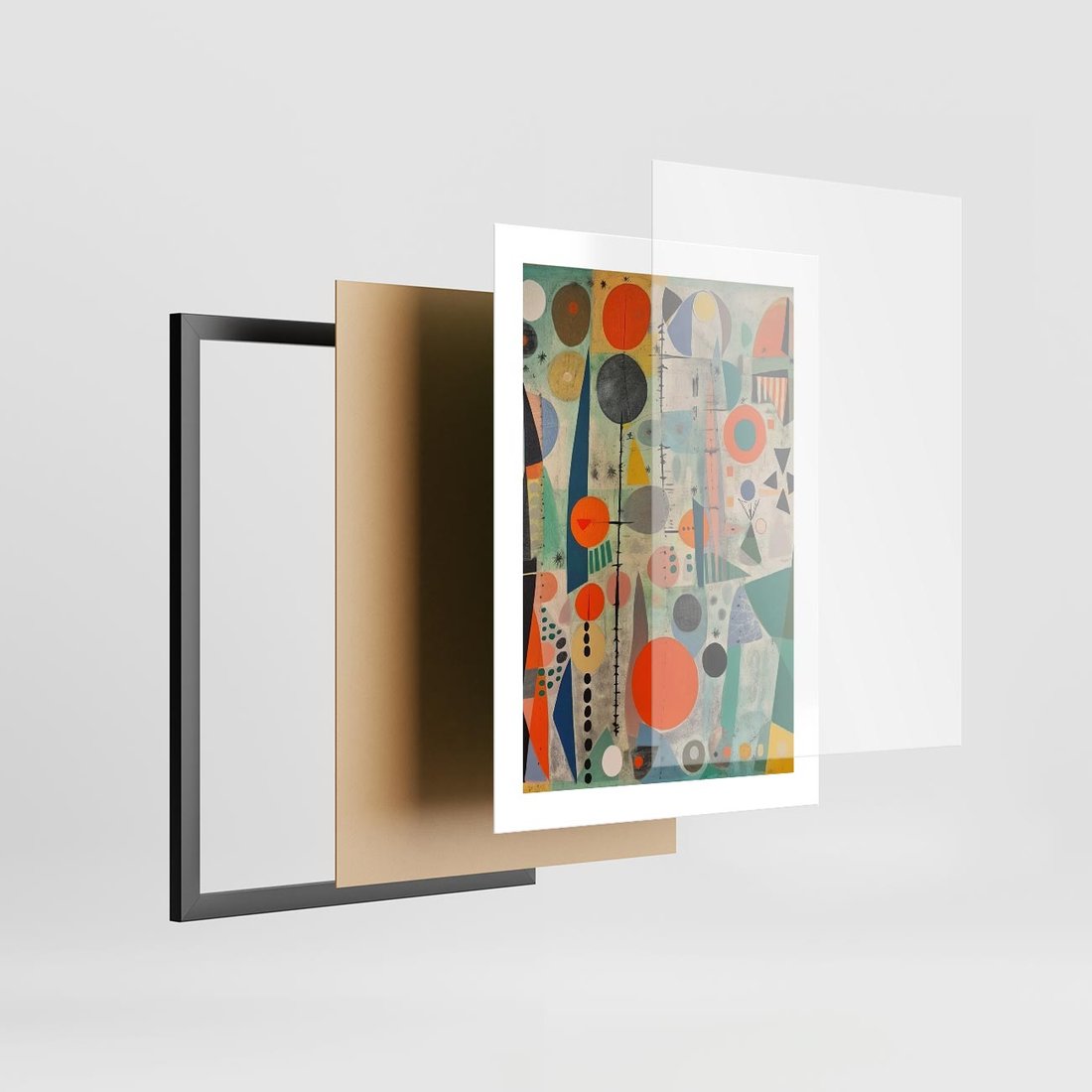 Plakat w ramie 30x40 - Wewnętrzne Zagadki Kształtów - abstrakcyjny obraz, sztuka abstrakcji - rama czarna