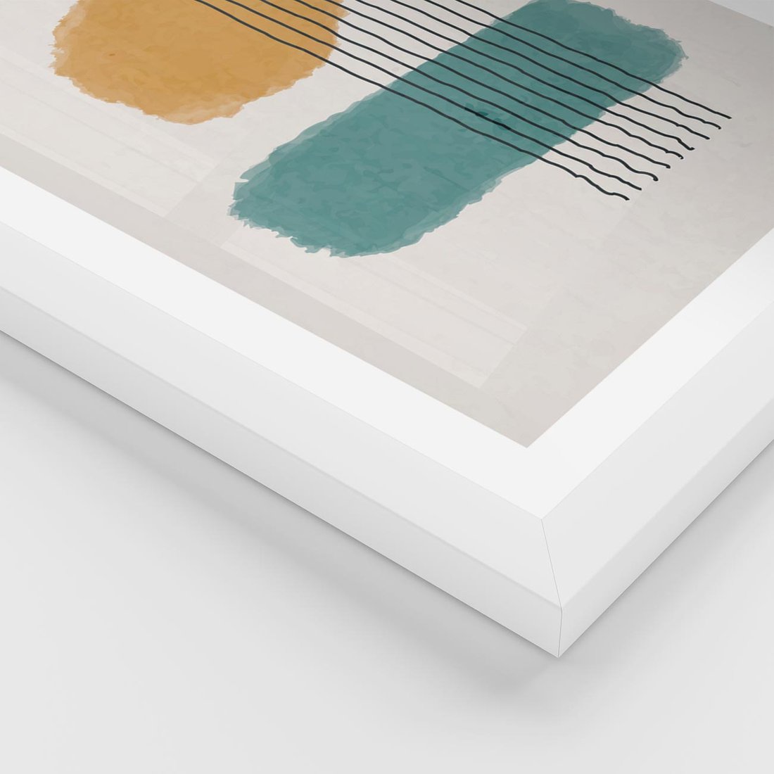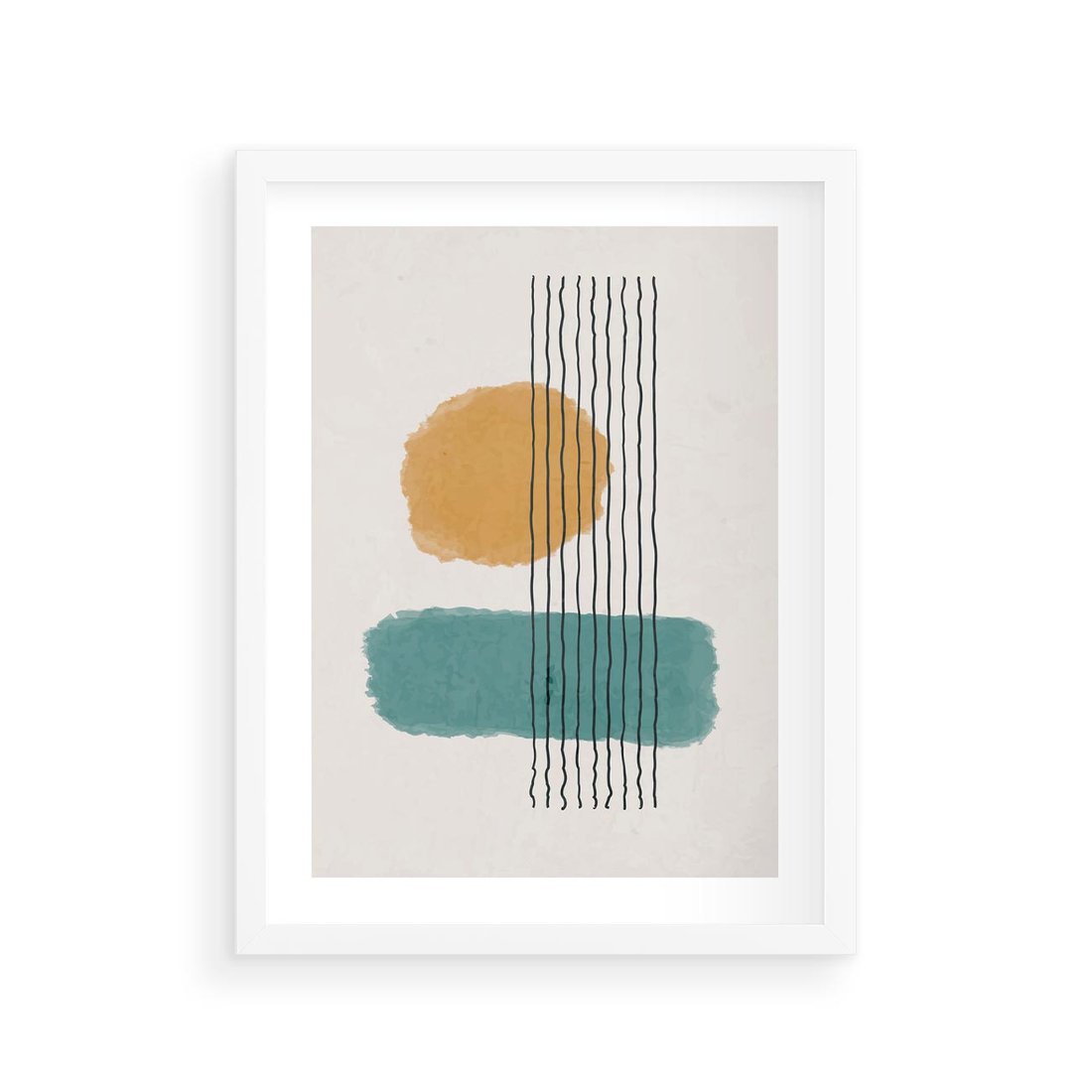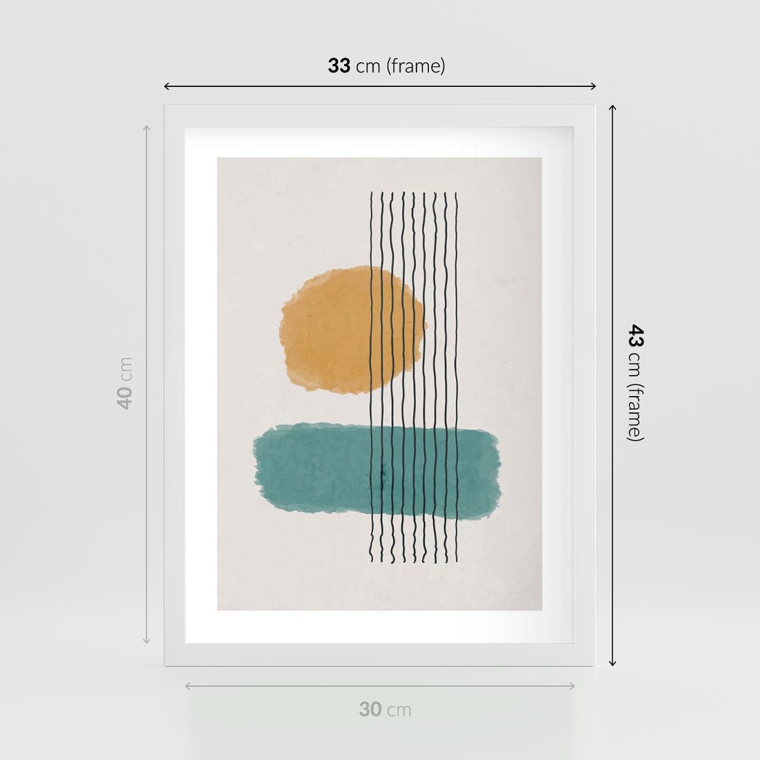 Plakat w ramie 30x40 - Wibracje Barw - abstrakcyjne akwarelowe plamy, nieregularne kreski - rama biała
