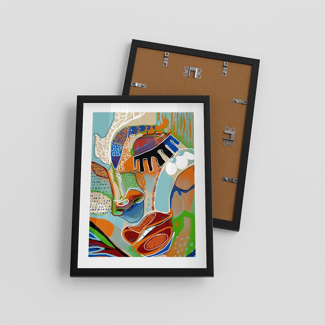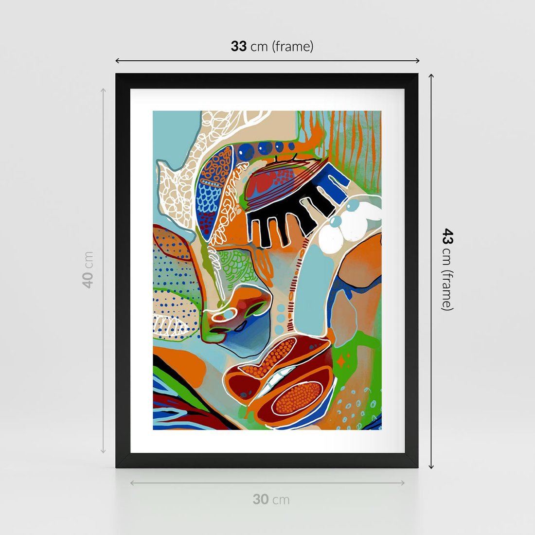 Plakat w ramie 30x40 - Wibracje Kształtów - abstrakcyjny portret kobiety, twarz - rama czarna