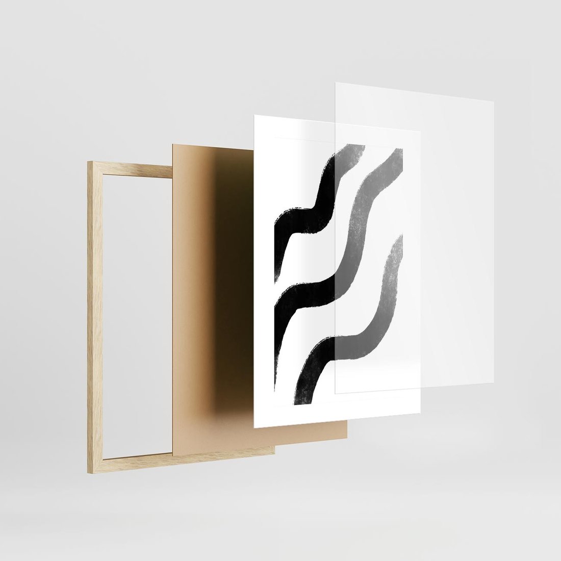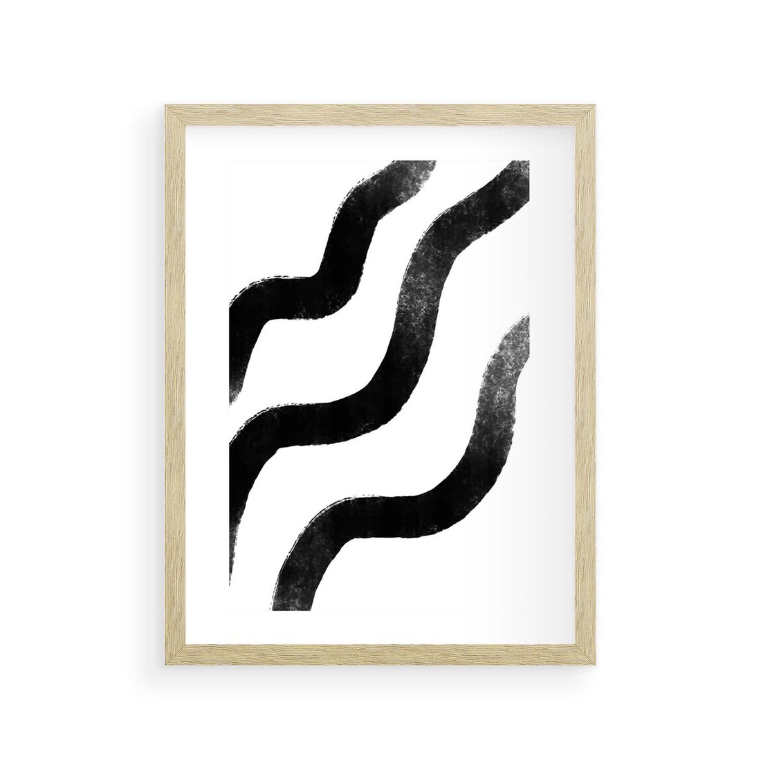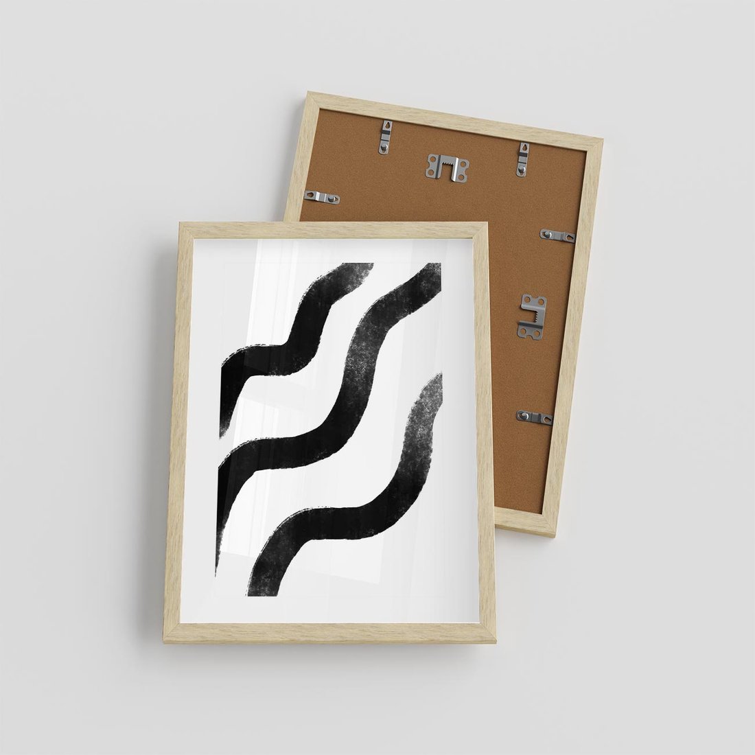 Ten minimalistyczny obraz abstrakcyjny w stylu modern art charakteryzuje się czarnymi falującymi liniami, które tworzą dynamiczną i wyrazistą kompozycję. To dzieło sztuki doskonale oddaje ducha nowoczesności i minimalizmu, nadając się idealnie do współczesnych wnętrz.