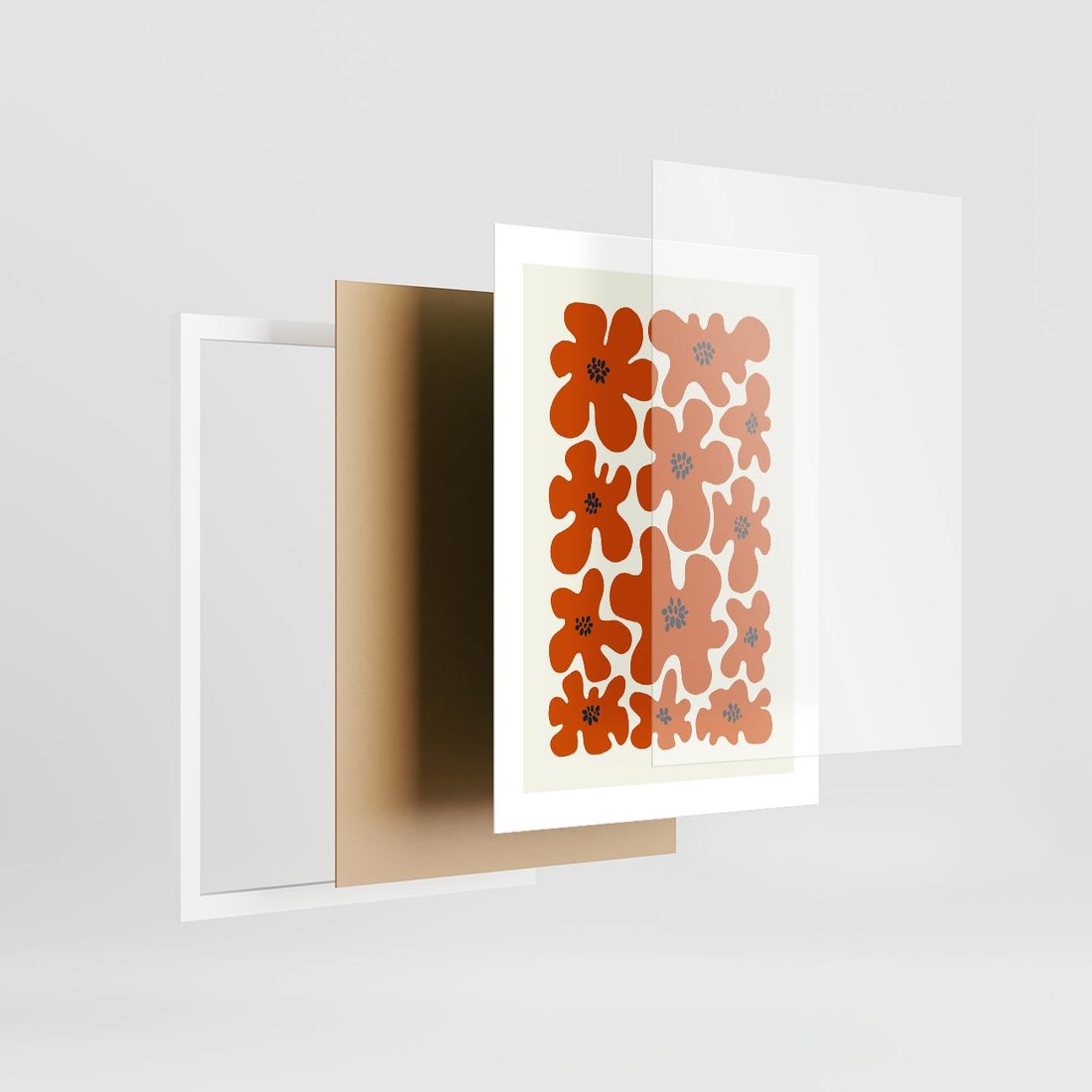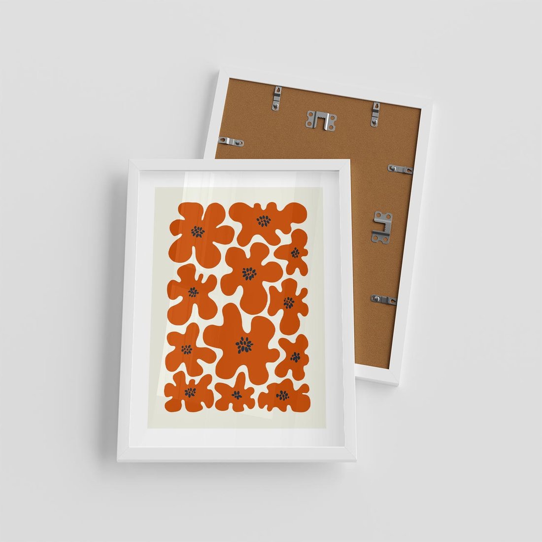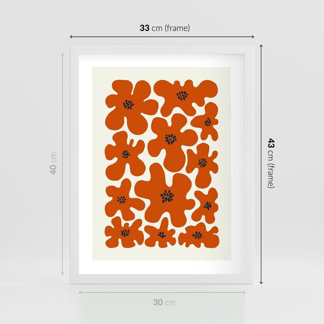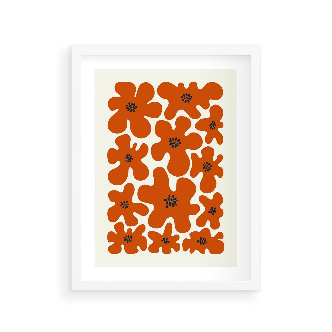 Plakat w ramie 30x40 - Wibracje Przestrzeni - abstrakcyjne czerwone kwiaty, kompozycja - rama biała