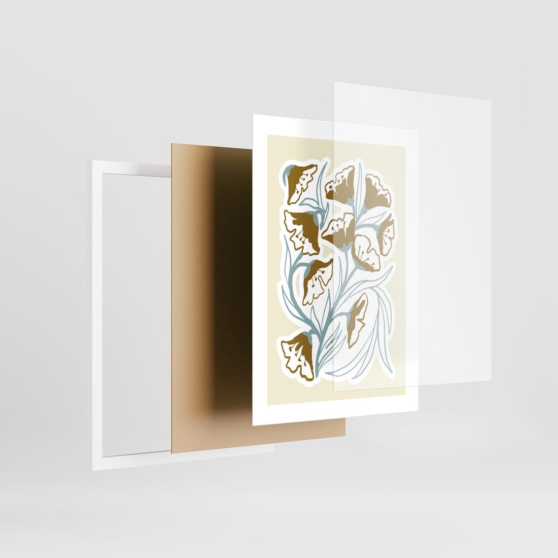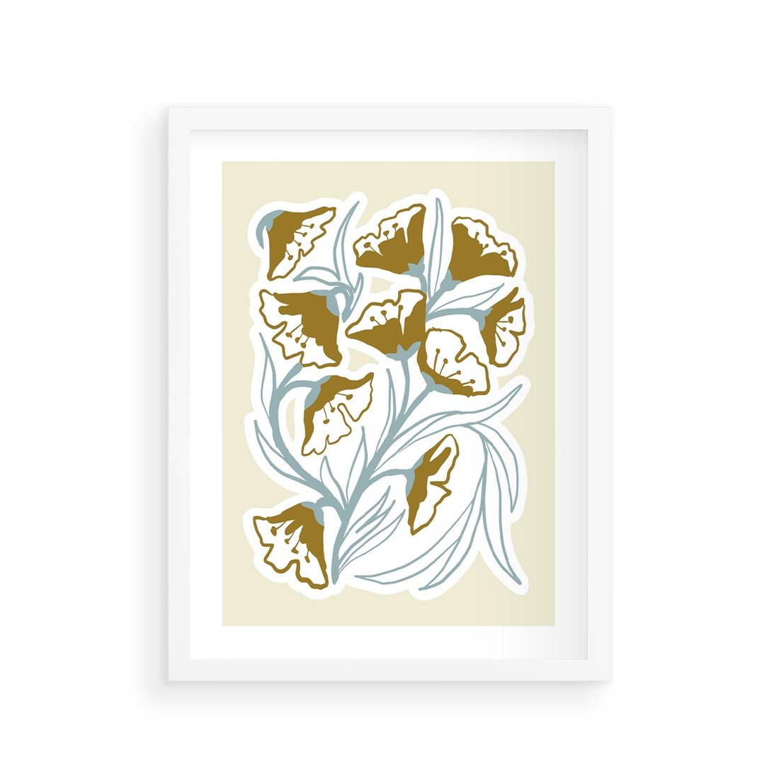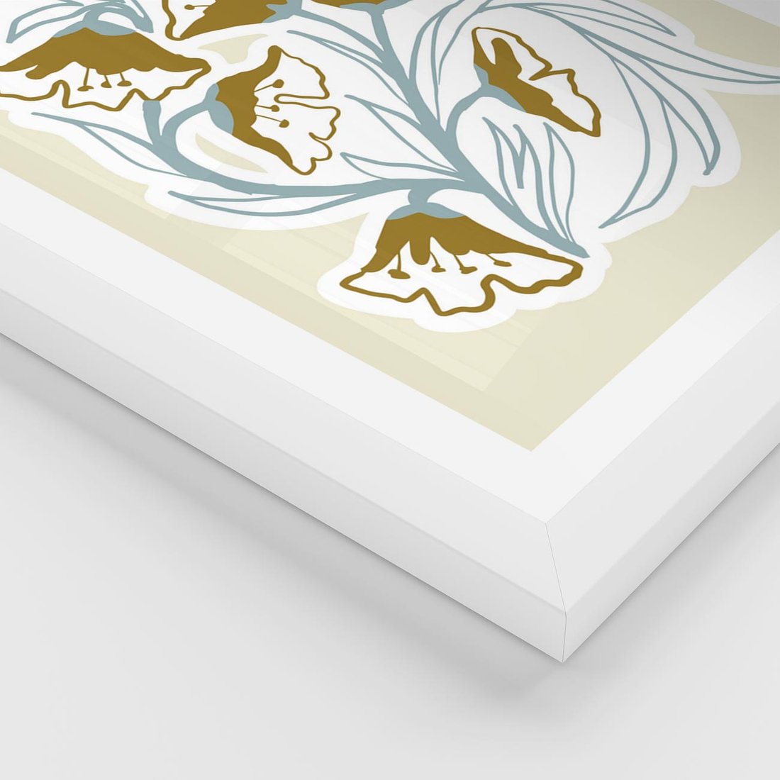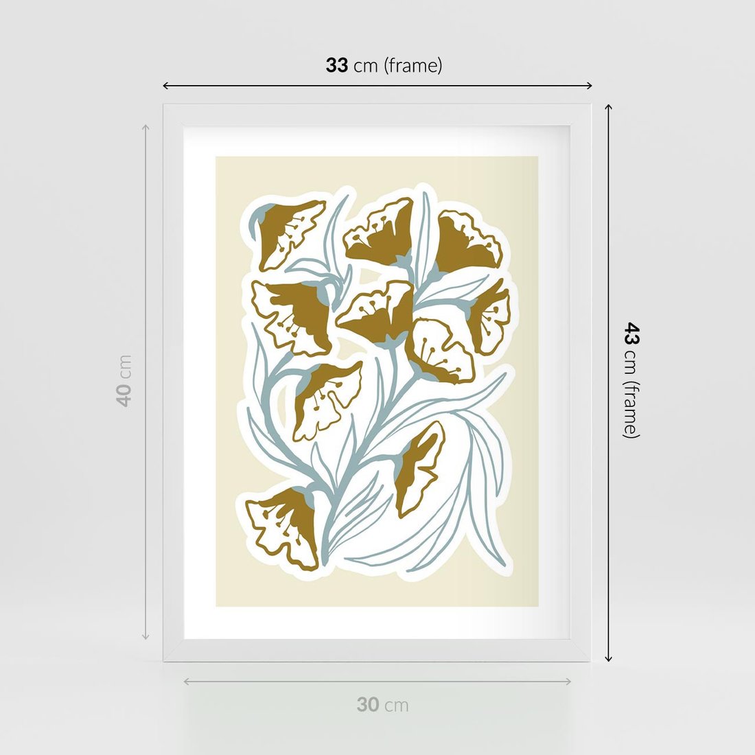 Plakat w ramie 30x40 - Wibracje Widzenia - abstrakcyjne beżowe kwiaty, elegancka kompozycja - rama biała