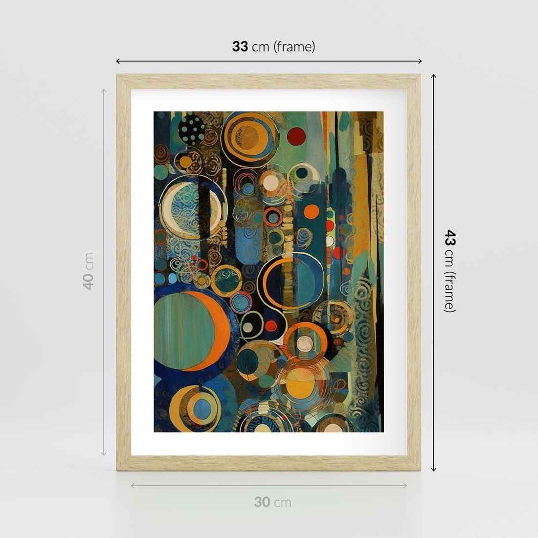 Plakat w ramie 30x40 - Wibracje Wymyślnych Form - abstrakcyjny obraz, mnogość kolorów - rama drewno