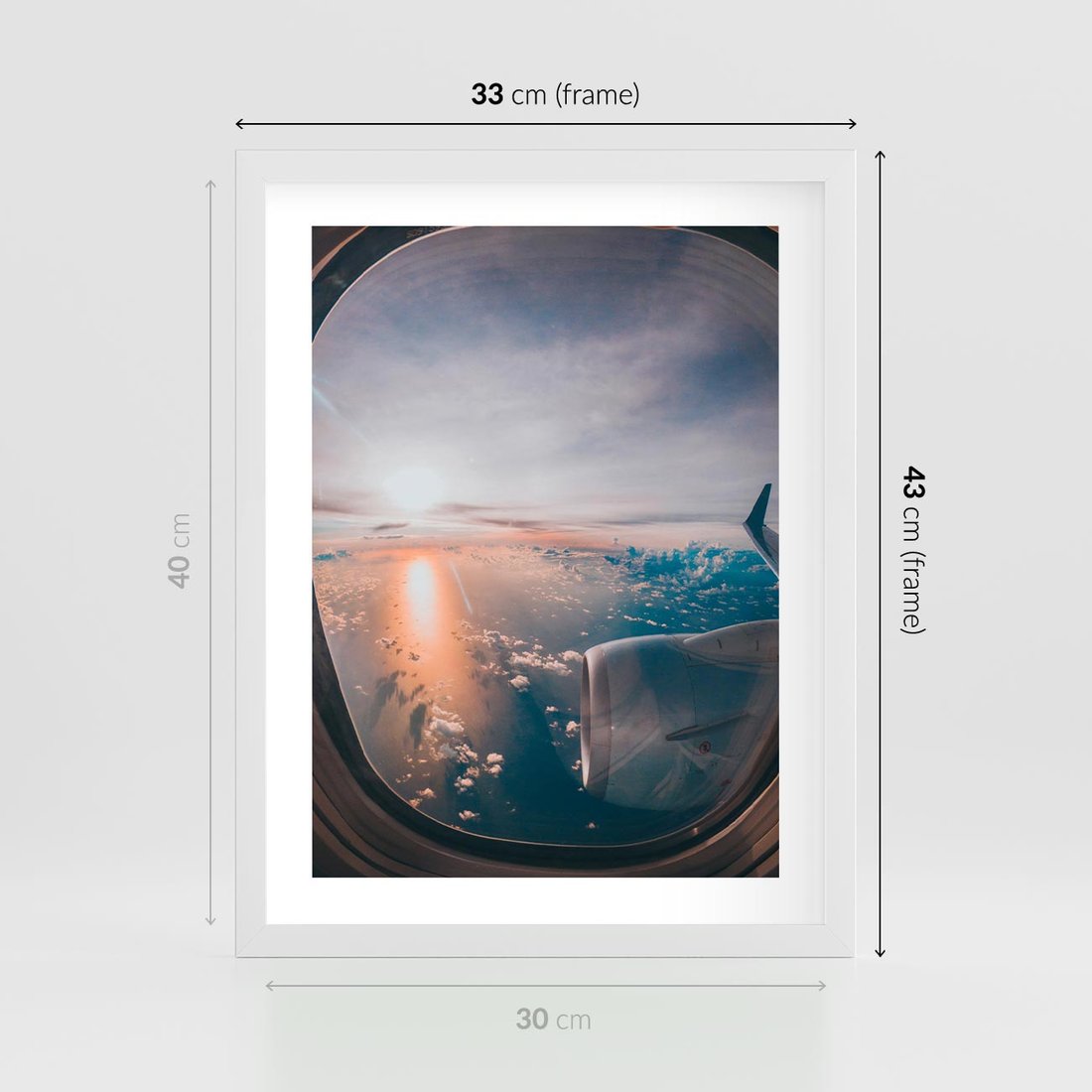 Plakat w ramie 30x40 - Widok z Góry - fotografia, zdjecie z okna samolotu - rama biała