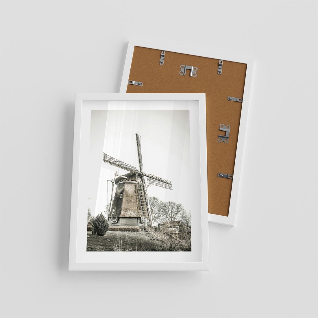 Plakat w ramie 30x40 - Wiejska Idylla z Młynem - wiatrak, młyn - rama biała