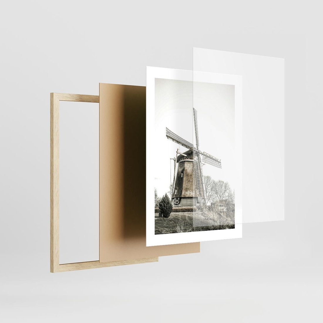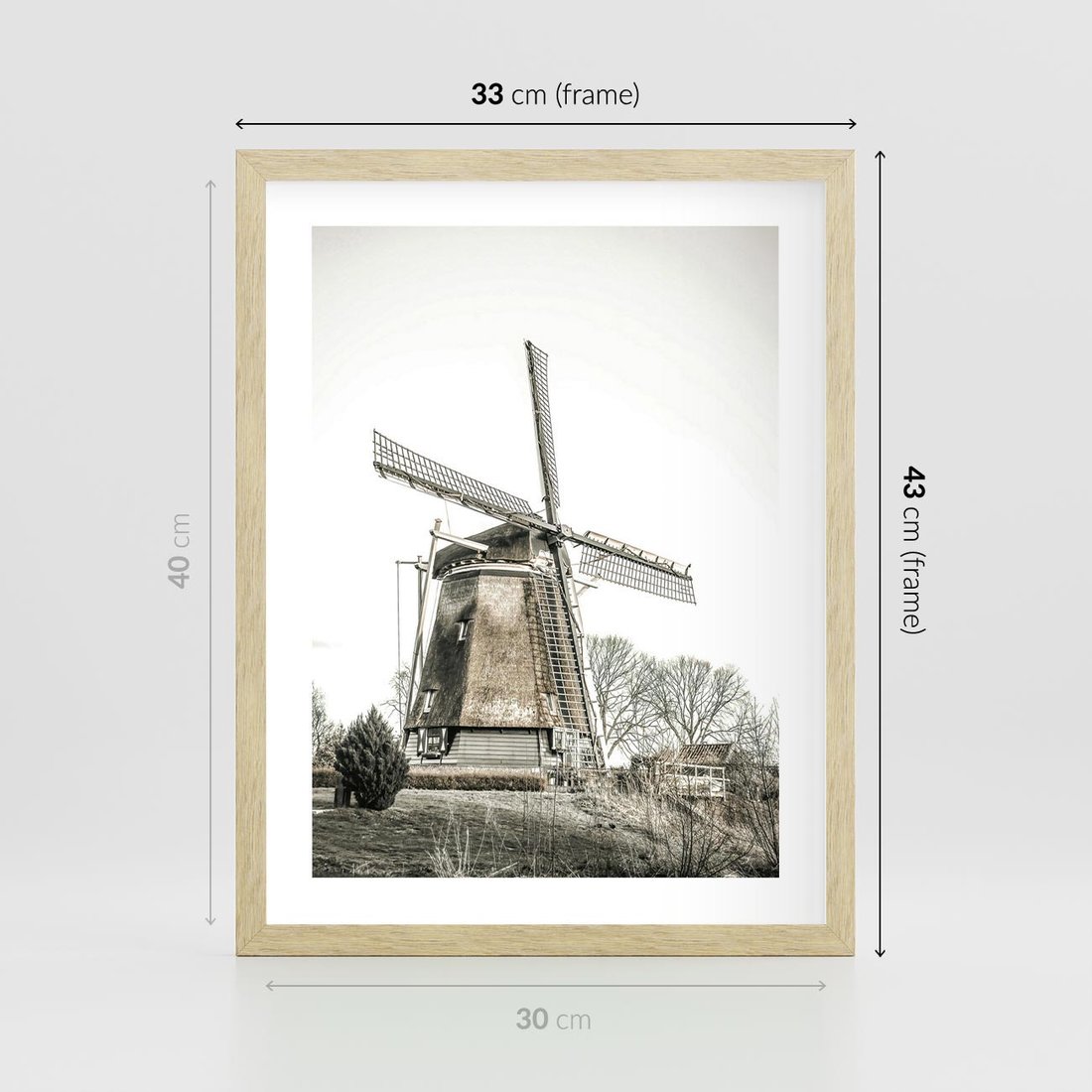 Plakat w ramie 30x40 - Wiejska Idylla z Młynem - wiatrak, młyn - rama drewno