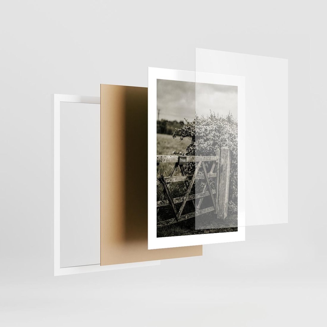 Plakat w ramie 30x40 - Wiejski Urok: Stary Płot i Kwitnący Krzew - rustykalne zdjęcie, stary płot - rama biała