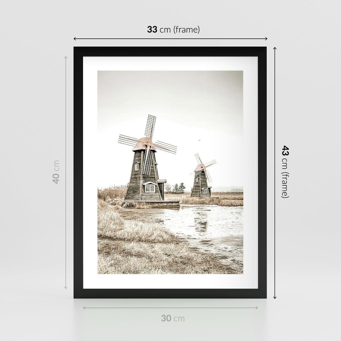 Plakat w ramie 30x40 - Wiejskie Młyny: Rustykalna Fotografia - młyny, rustykalna fotografia - rama czarna