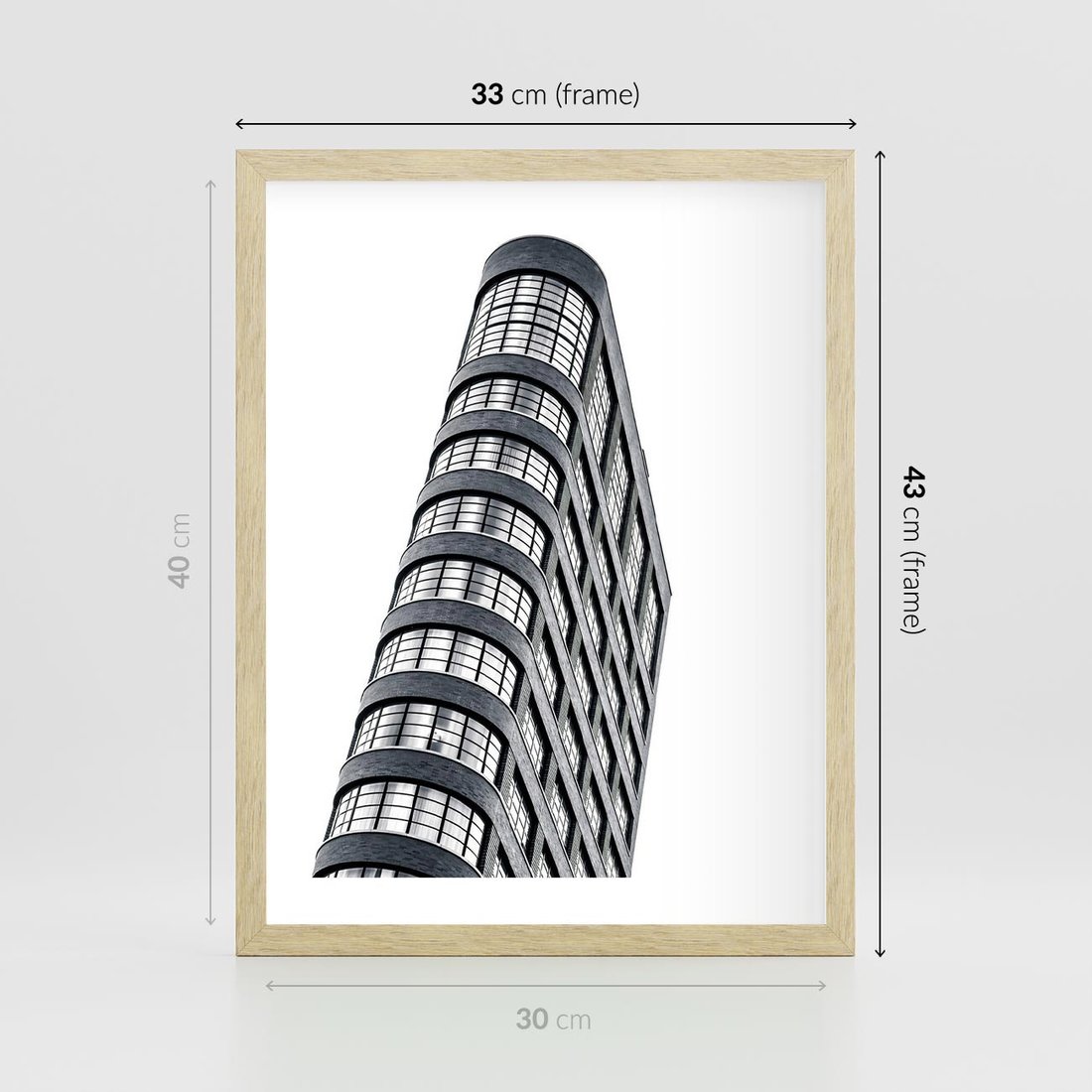 Plakat w ramie 30x40 - Wieżowiec na Monochromatycznym Obrazie - architektura, wieżowiec - rama drewno
