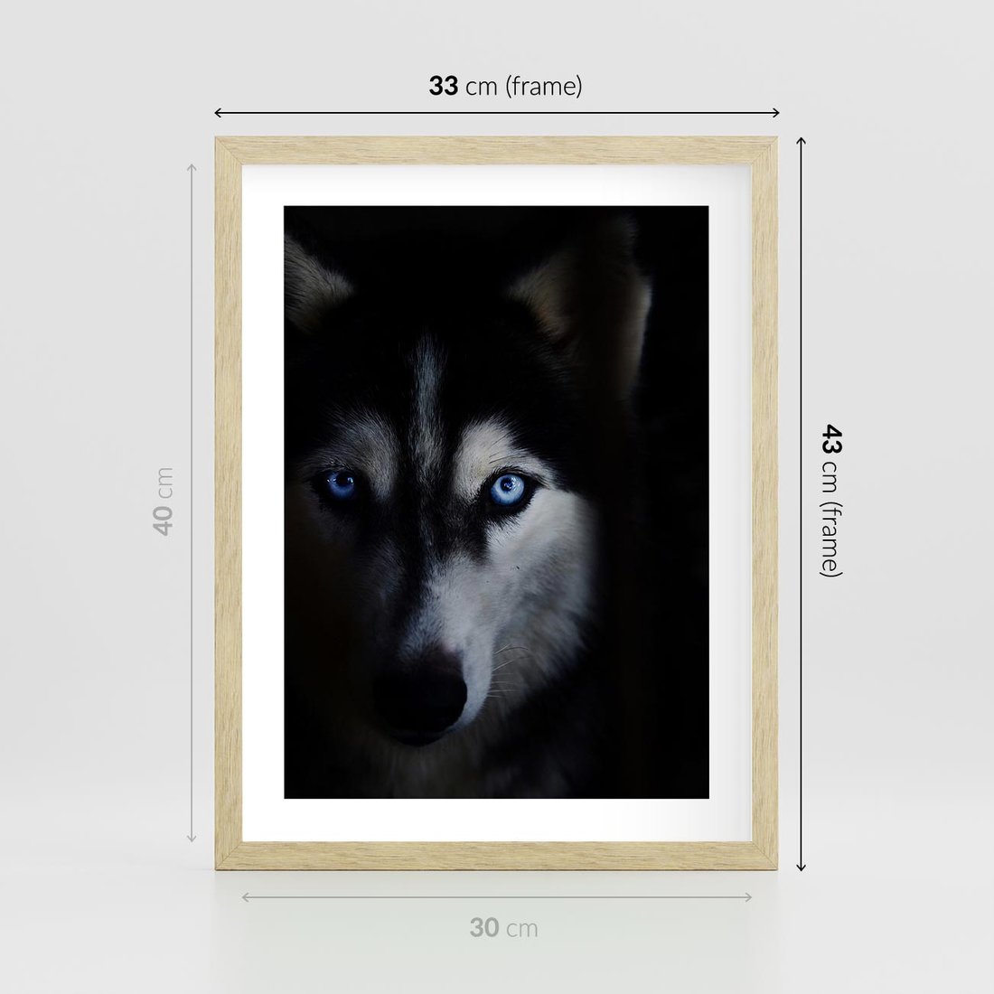 • Plakat w ramie 30x40 - Wilk i husky: siła przyjaźni