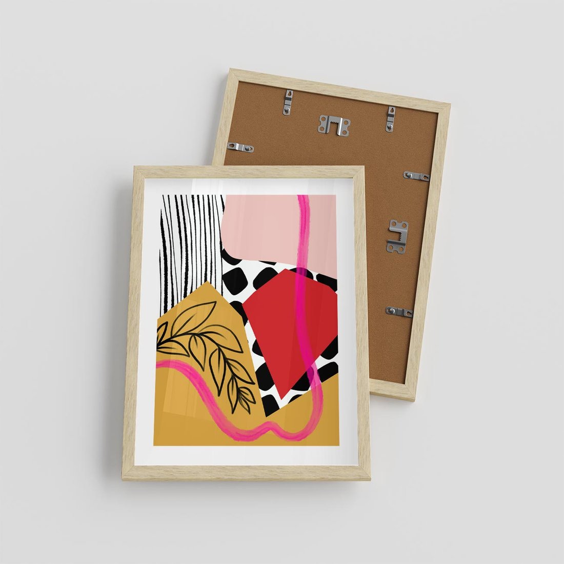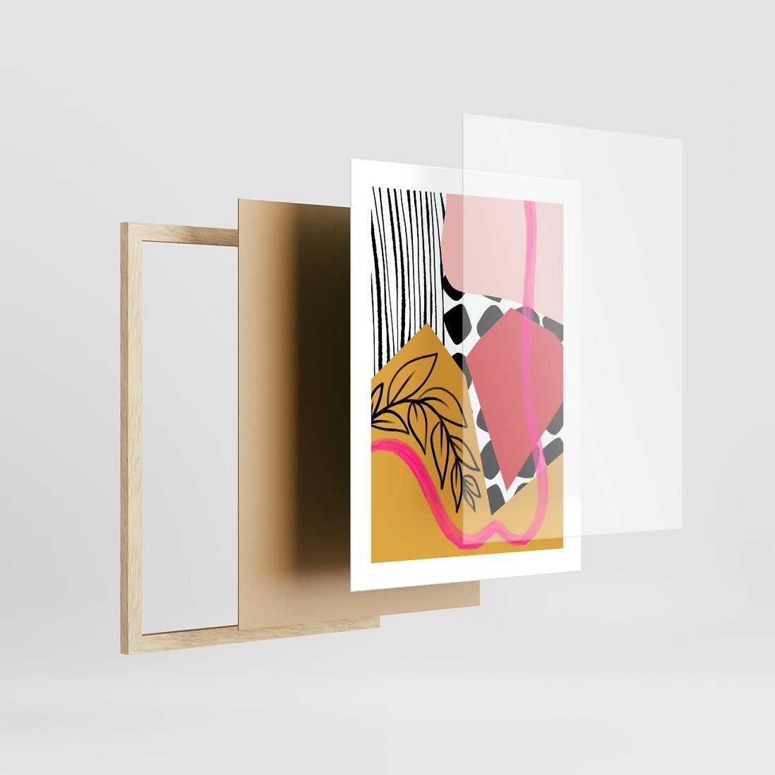 Plakat w ramie 30x40 - Wnętrza Form - abstrakcyjna kompozycja, różne tekstury - rama drewno