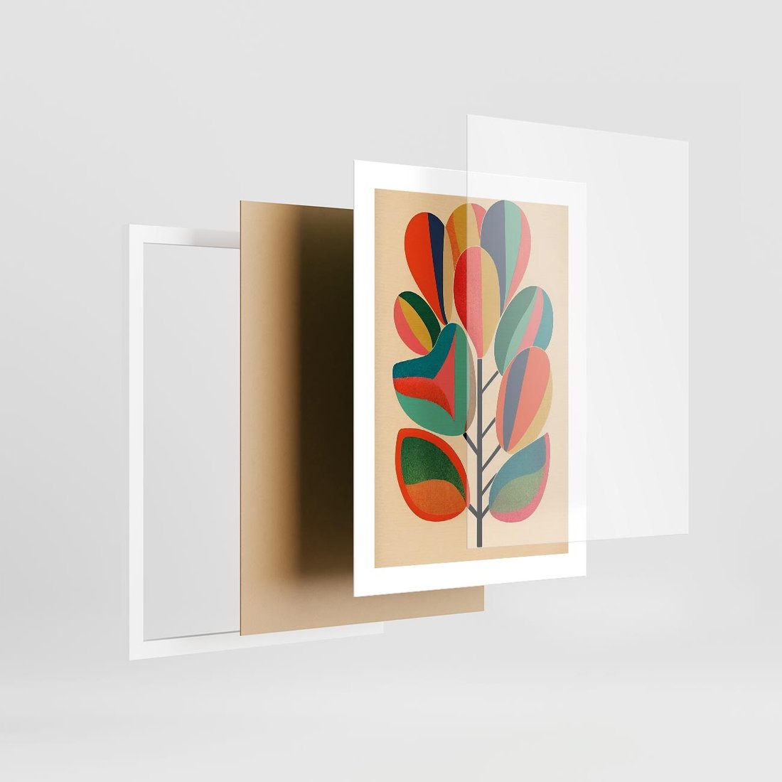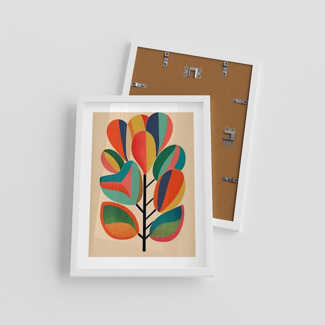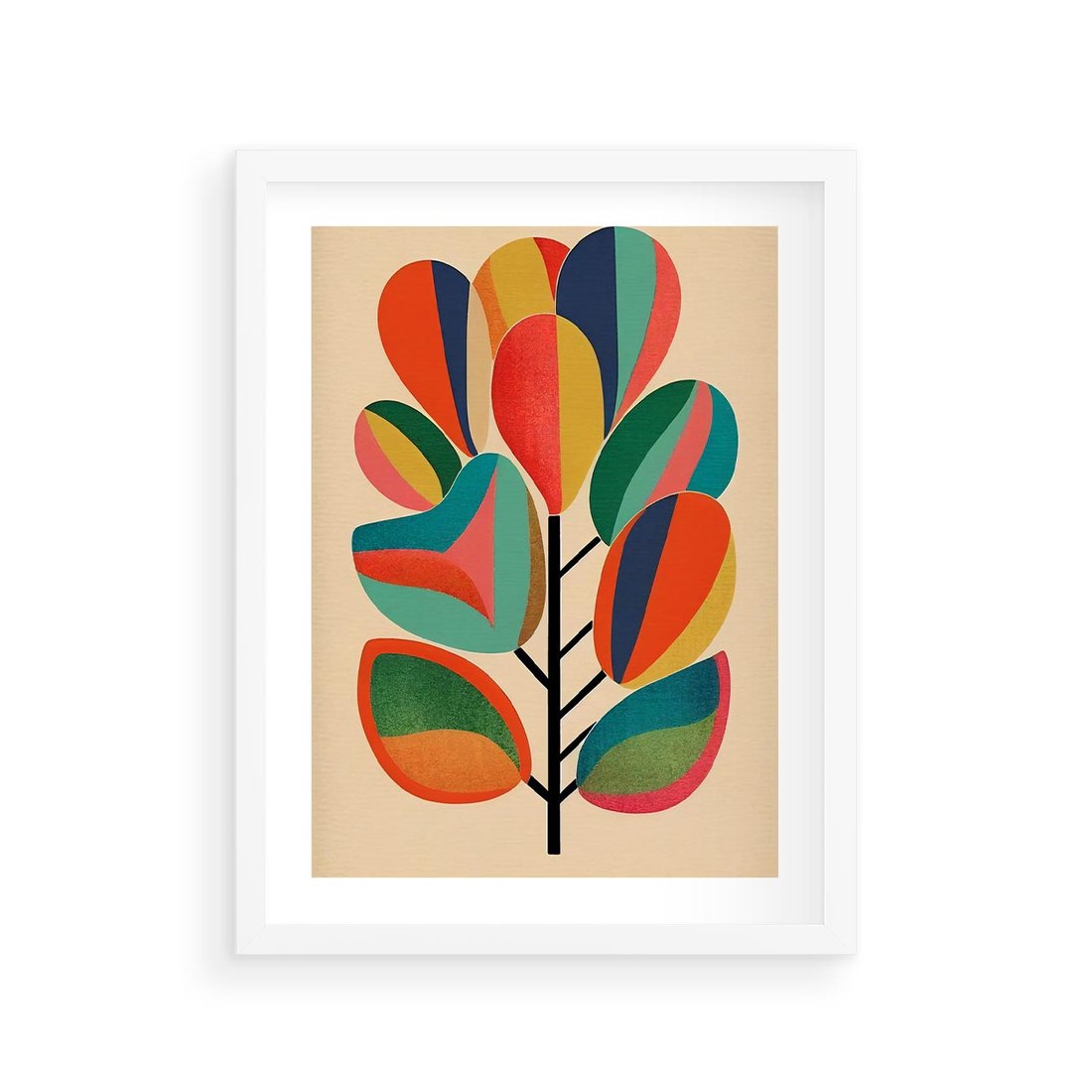 Plakat w ramie 30x40 - Wnętrza Kształtów - abstrakcyjny kolorowy tęczowy obraz, inspiracje roślinne - rama biała