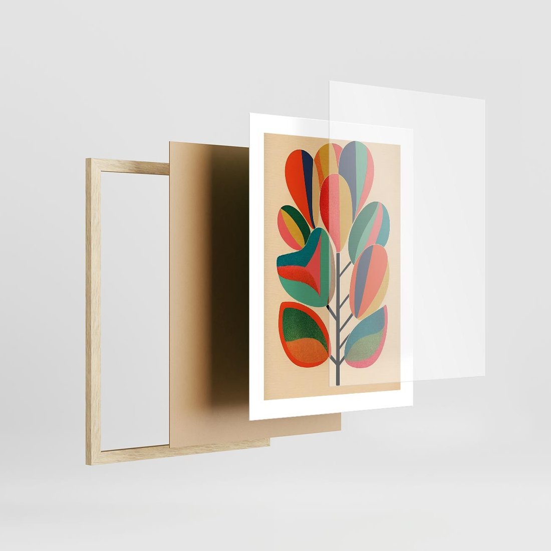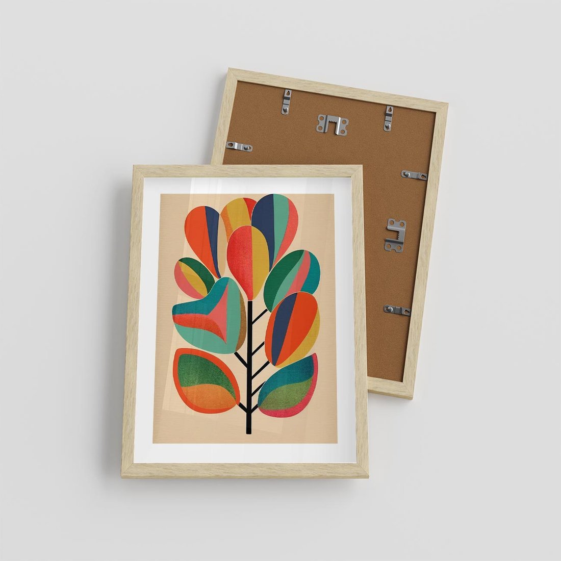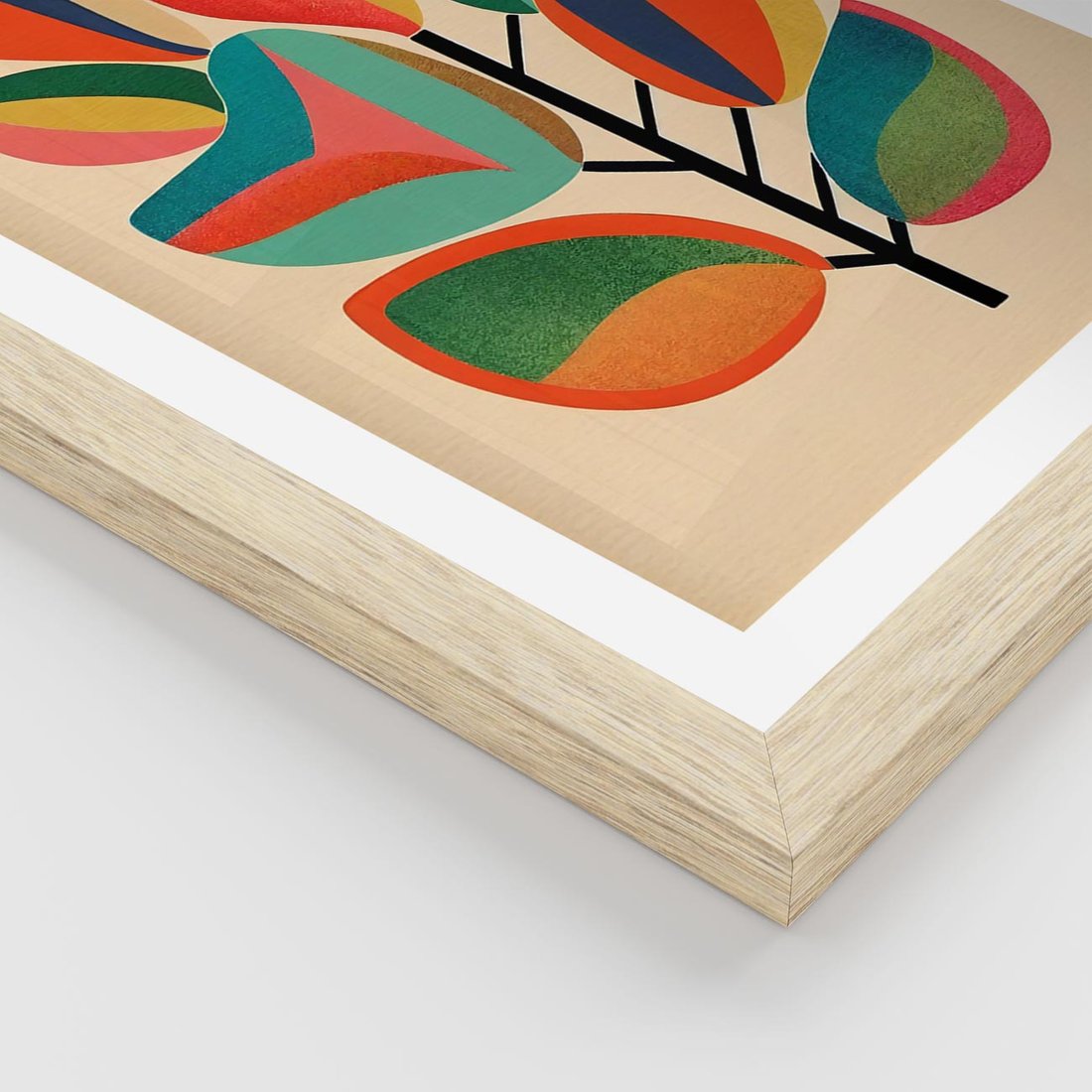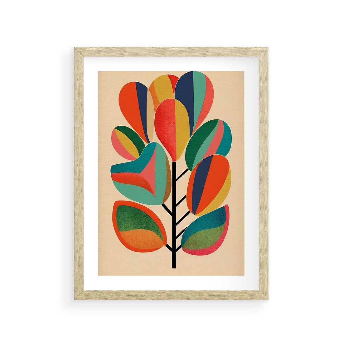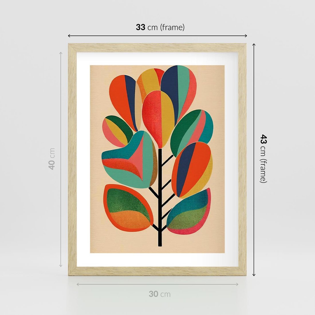 Plakat w ramie 30x40 - Wnętrza Kształtów - abstrakcyjny kolorowy tęczowy obraz, inspiracje roślinne - rama drewno