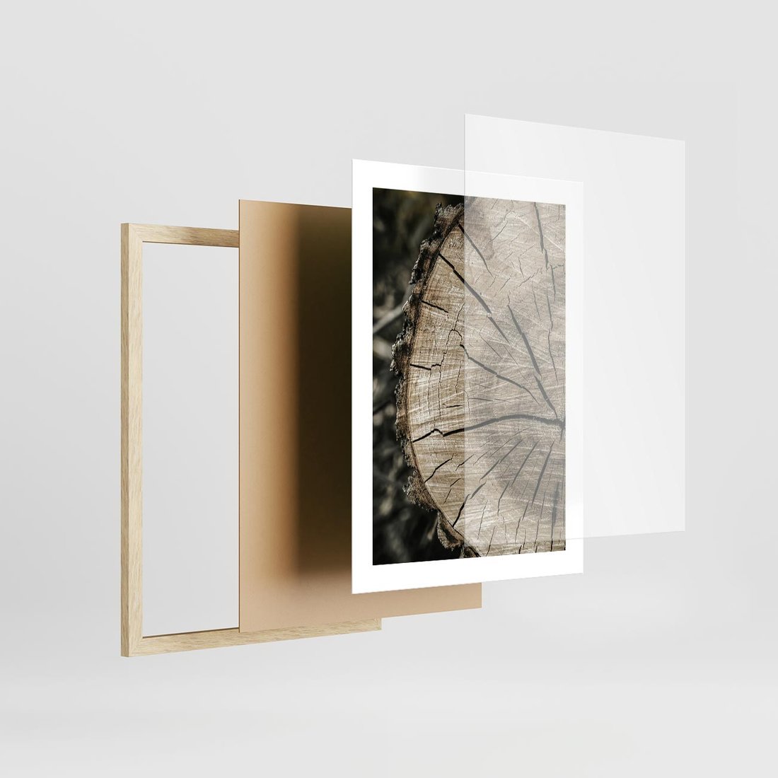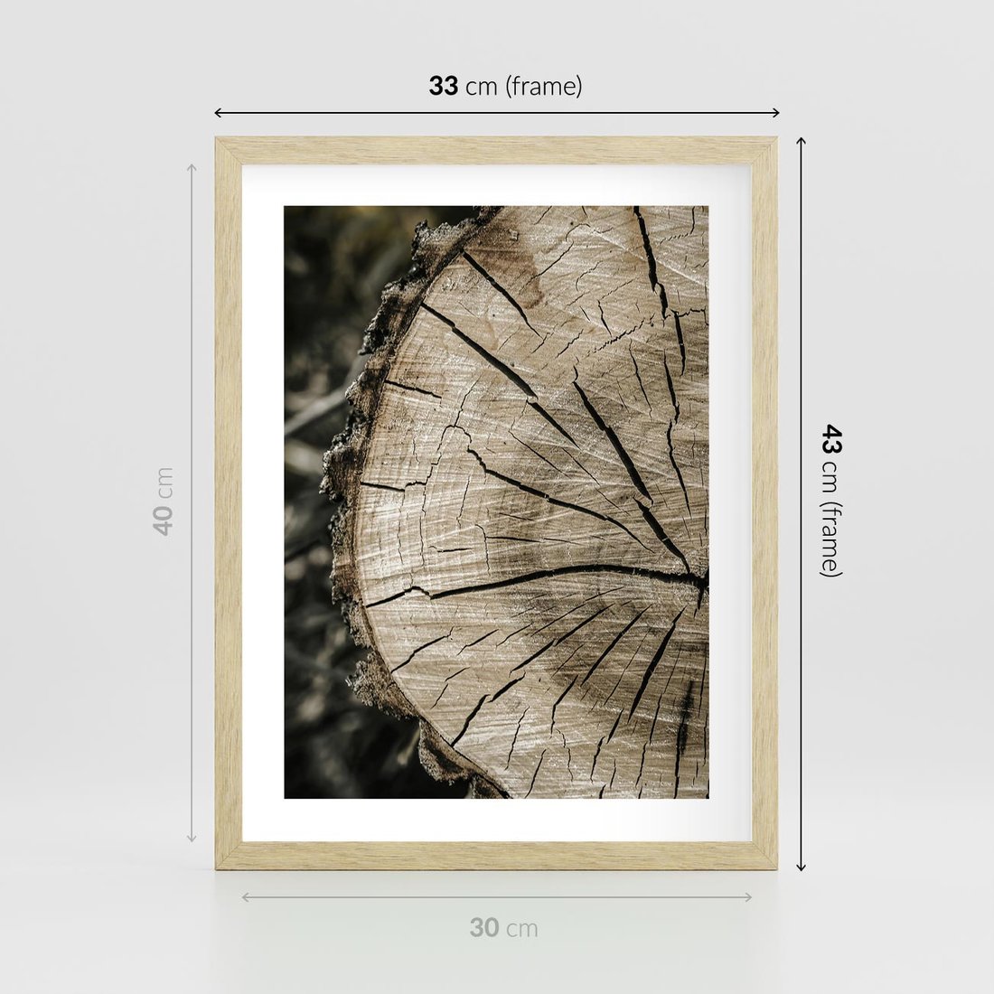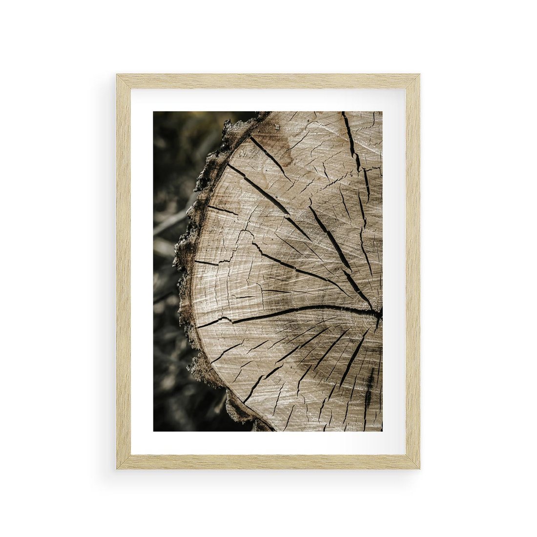 Plakat w ramie 30x40 - Wnętrze Natury - pień, przecięty pień - rama drewno