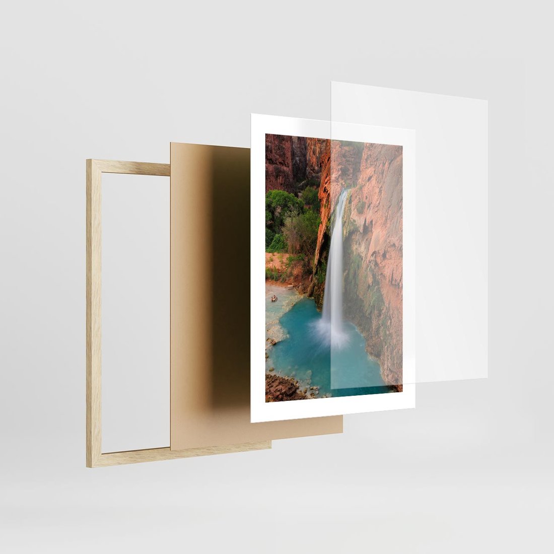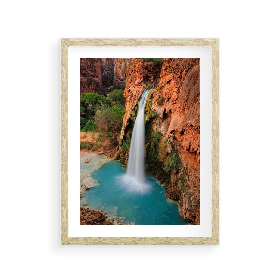 Plakat w ramie 30x40 - Wodospad wśród majestatycznych gór - wodospad, górski - rama drewno