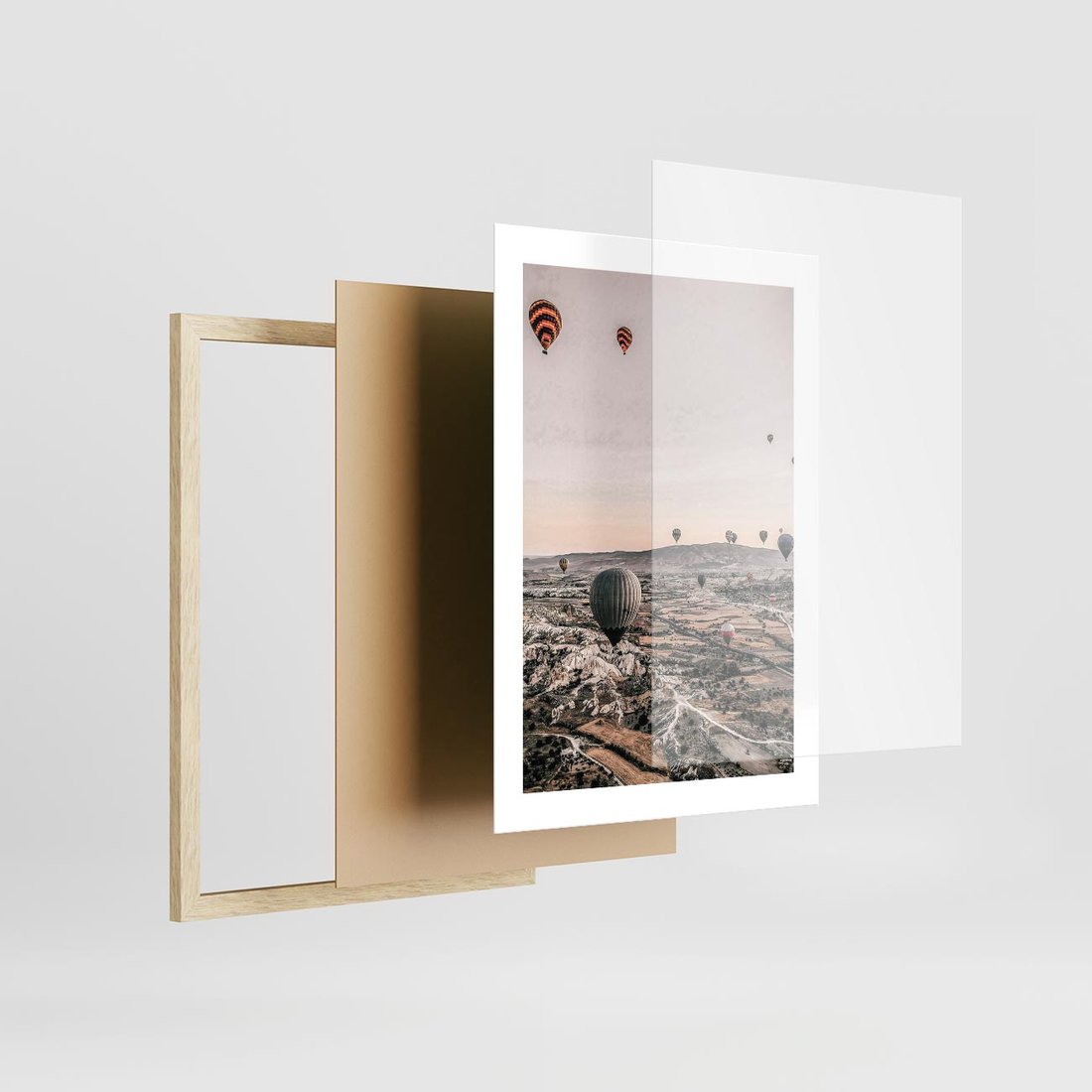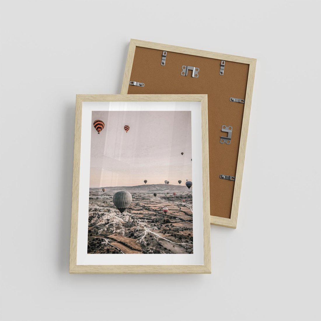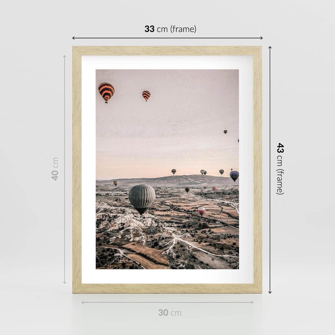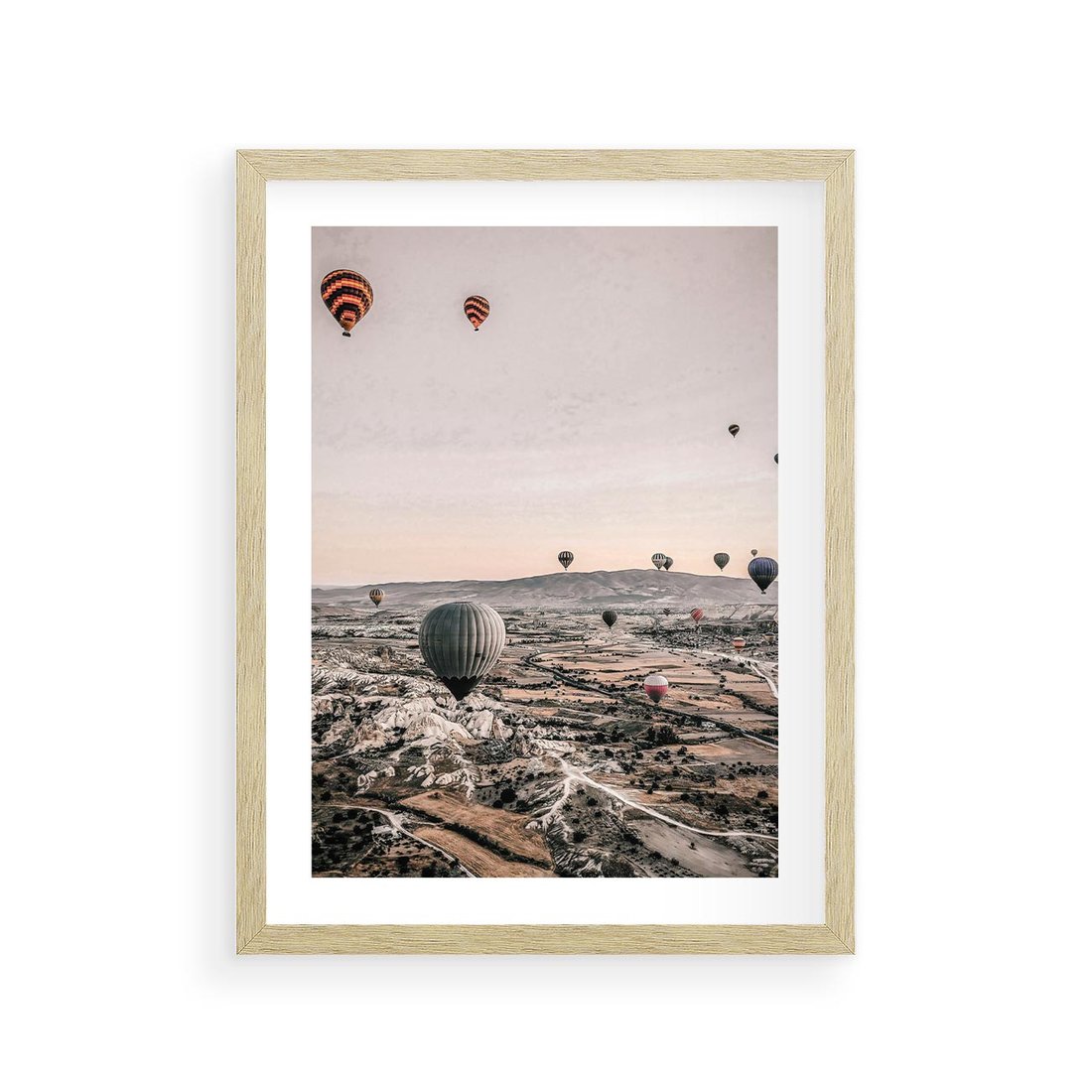 Plakat w ramie 30x40 - Wolność w Powietrzu - balony latające nas pustynnym krajbrazem, balony do latania - rama drewno