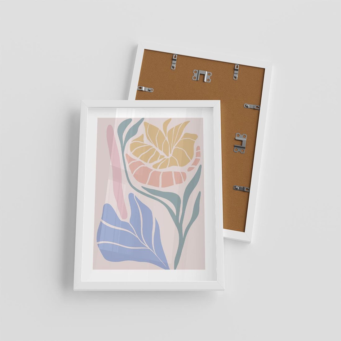 Ten minimalistyczny plakat przedstawia delikatne pastelowe kwiaty na spokojnym beżowym tle. To dzieło sztuki wprowadza do nowoczesnej przestrzeni harmonię i subtelność, jednocześnie zachowując minimalizm. Idealny wybór dla tych, którzy cenią prostotę i piękno natury w swoim nowoczesnym wnętrzu.