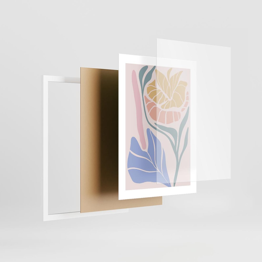 Plakat w ramie 30x40 - Wyjątkowe Ukojenie - pastelowe kwiaty, na beżowym tle - rama biała