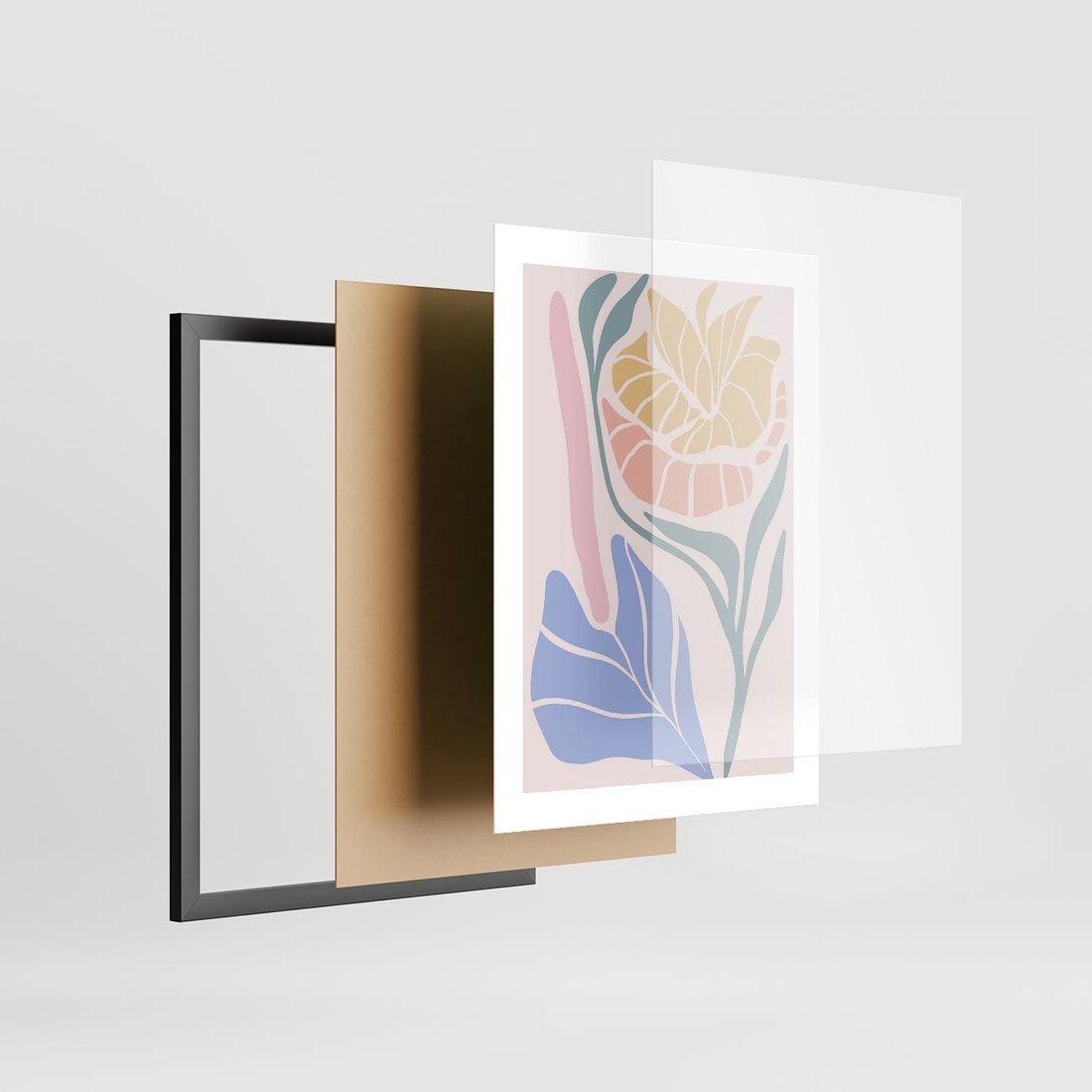 Plakat w ramie 30x40 - Wyjątkowe Ukojenie - pastelowe kwiaty, na beżowym tle - rama czarna