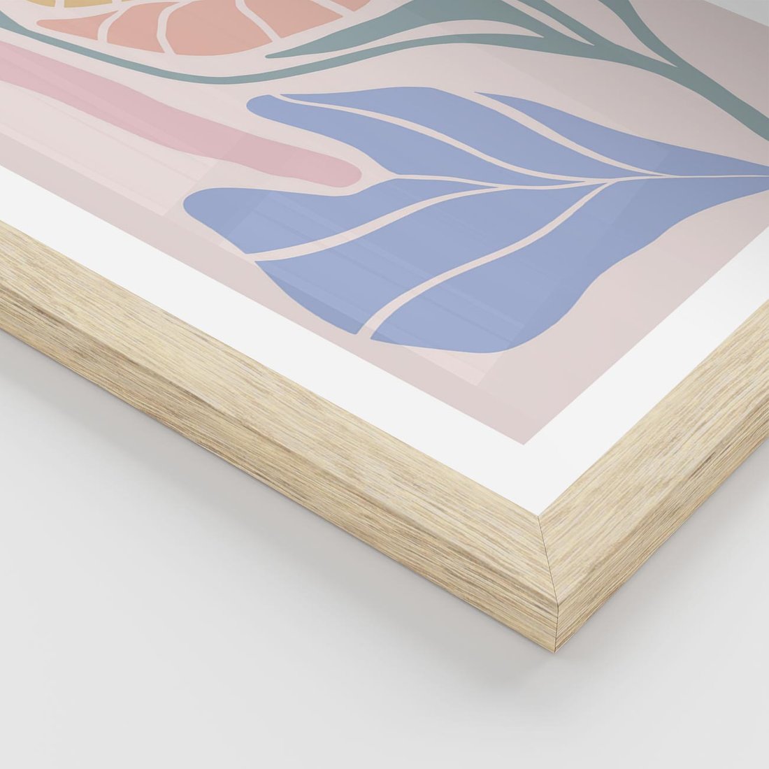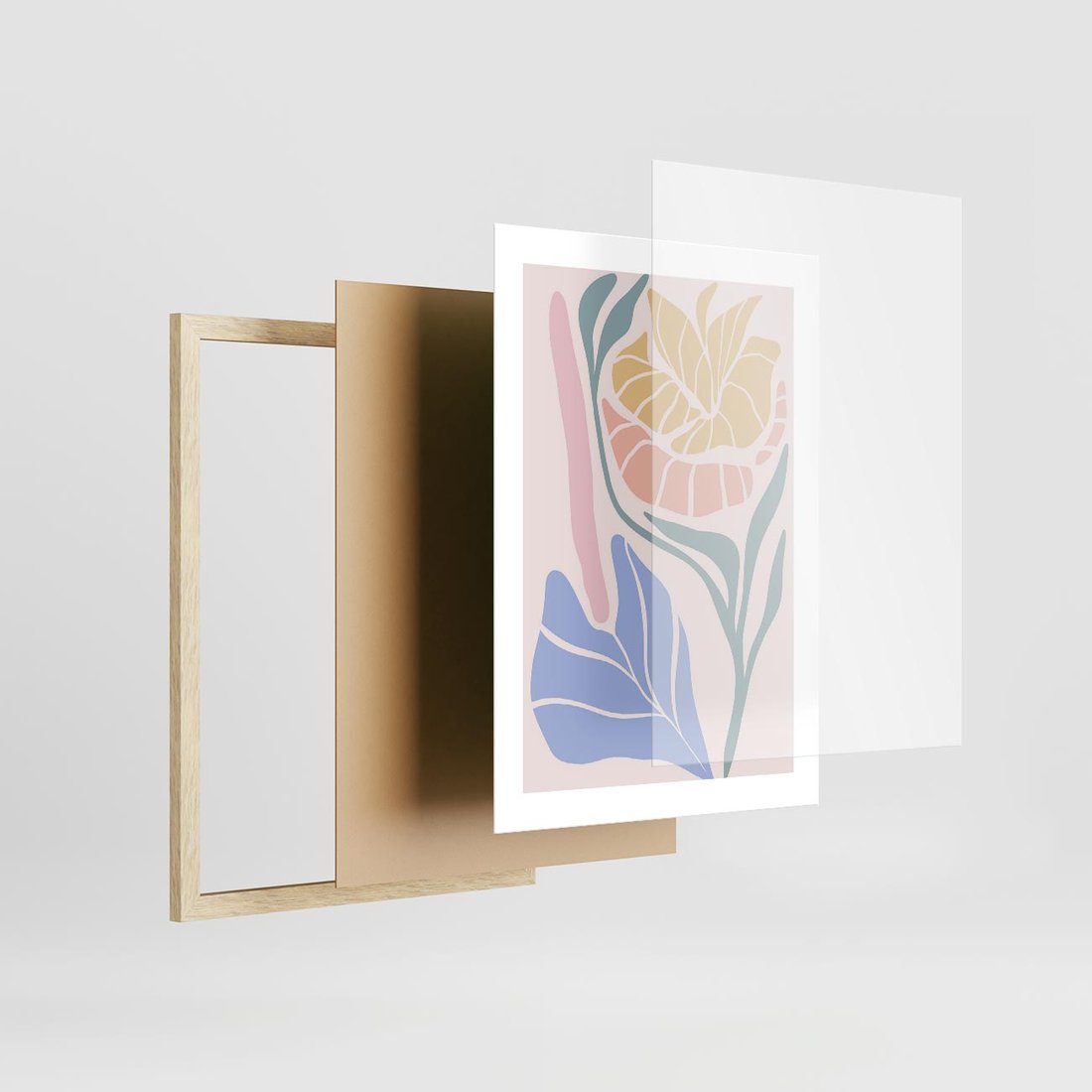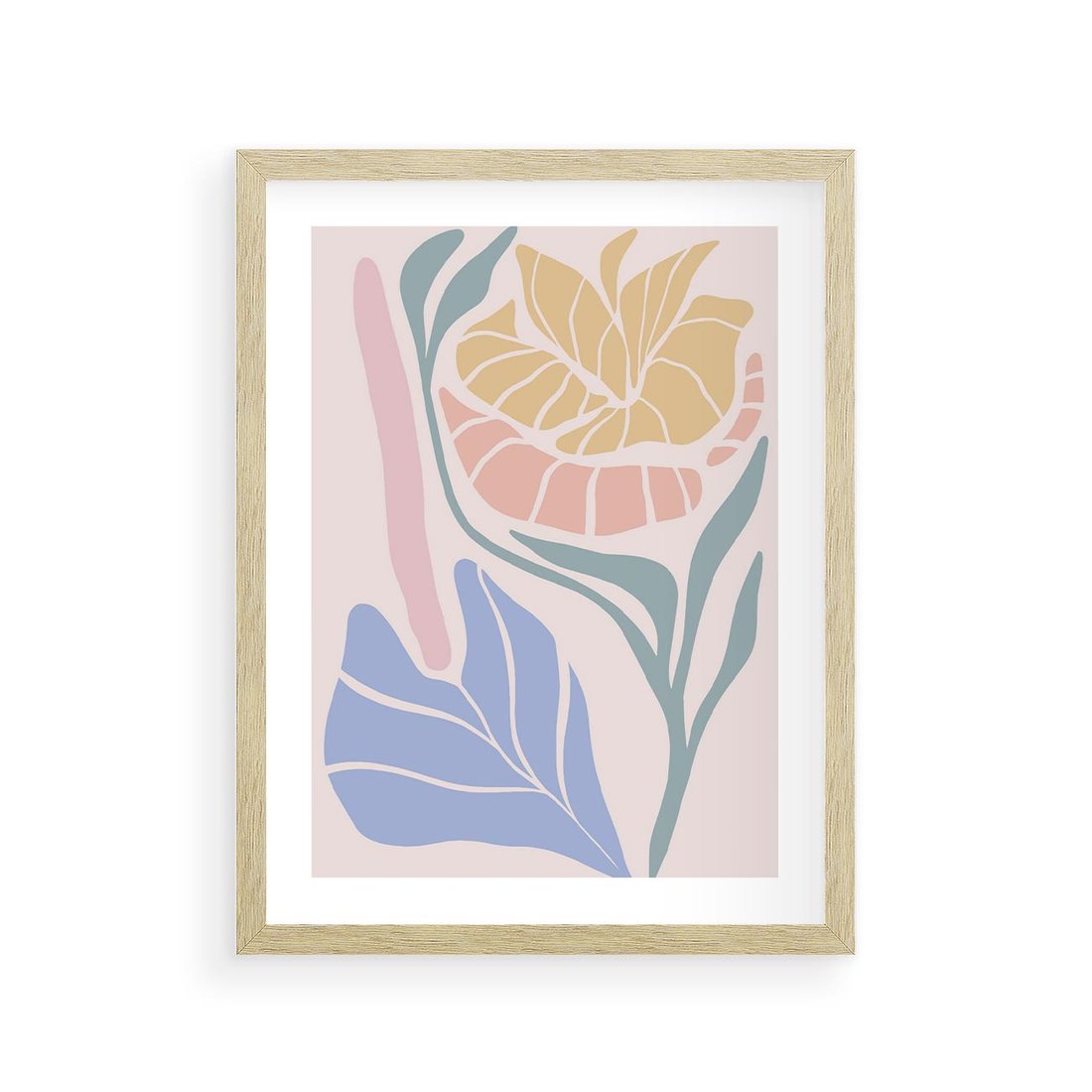 Plakat w ramie 30x40 - Wyjątkowe Ukojenie - pastelowe kwiaty, na beżowym tle - rama drewno